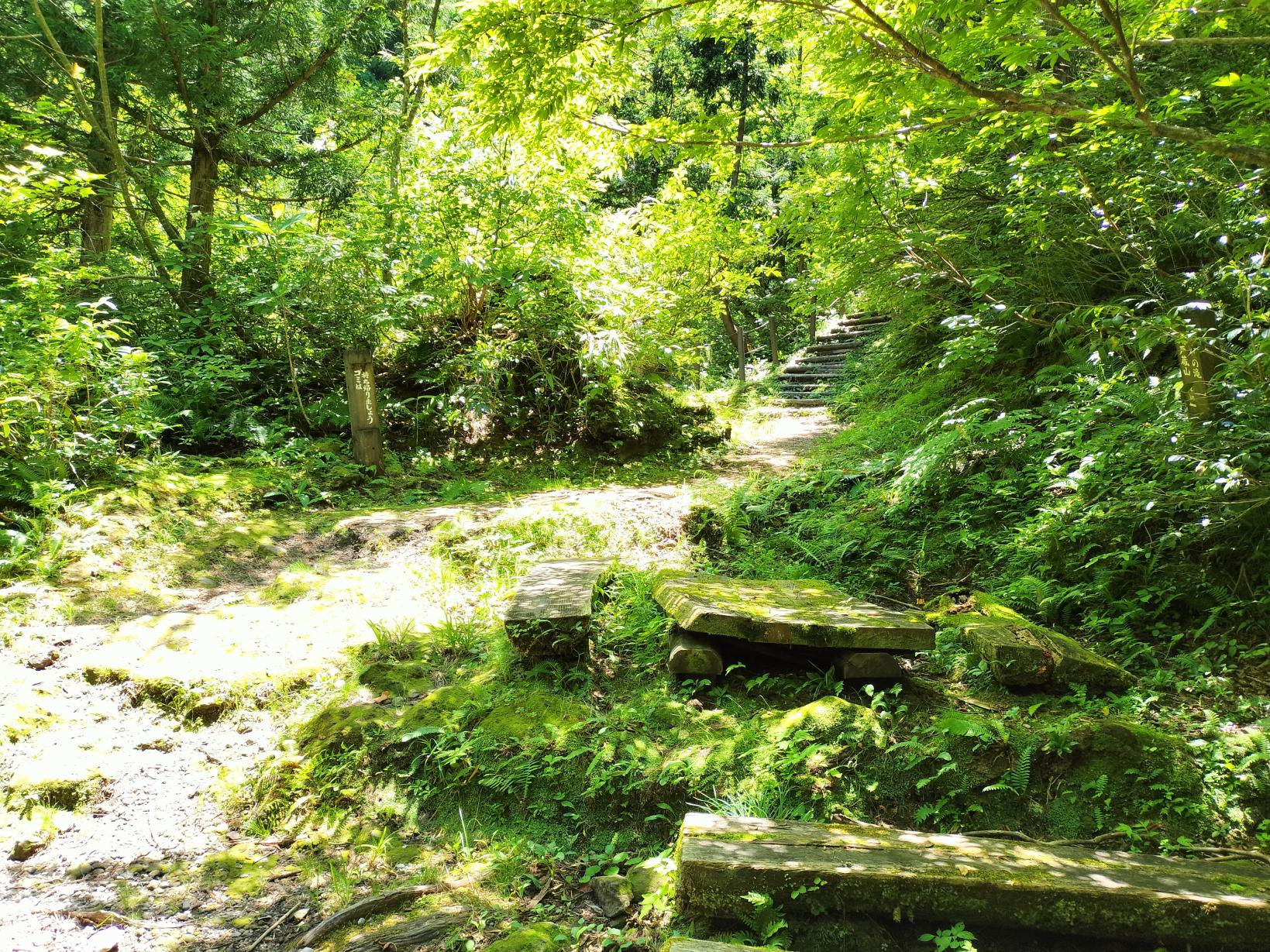 道中は花が咲いていたり、苔むした岩がなんともよい雰囲気。森の空気は美味しいです!
