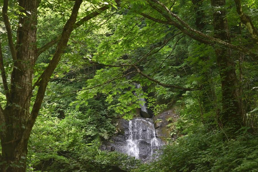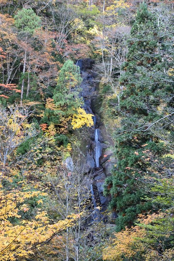 龍神の滝は進行方向左手に見えます。落差40メートル、龍が天に昇るように見えることから名付けられたとか。龍神というだけに、古くは修験者の修行の場ともなっていたようです。