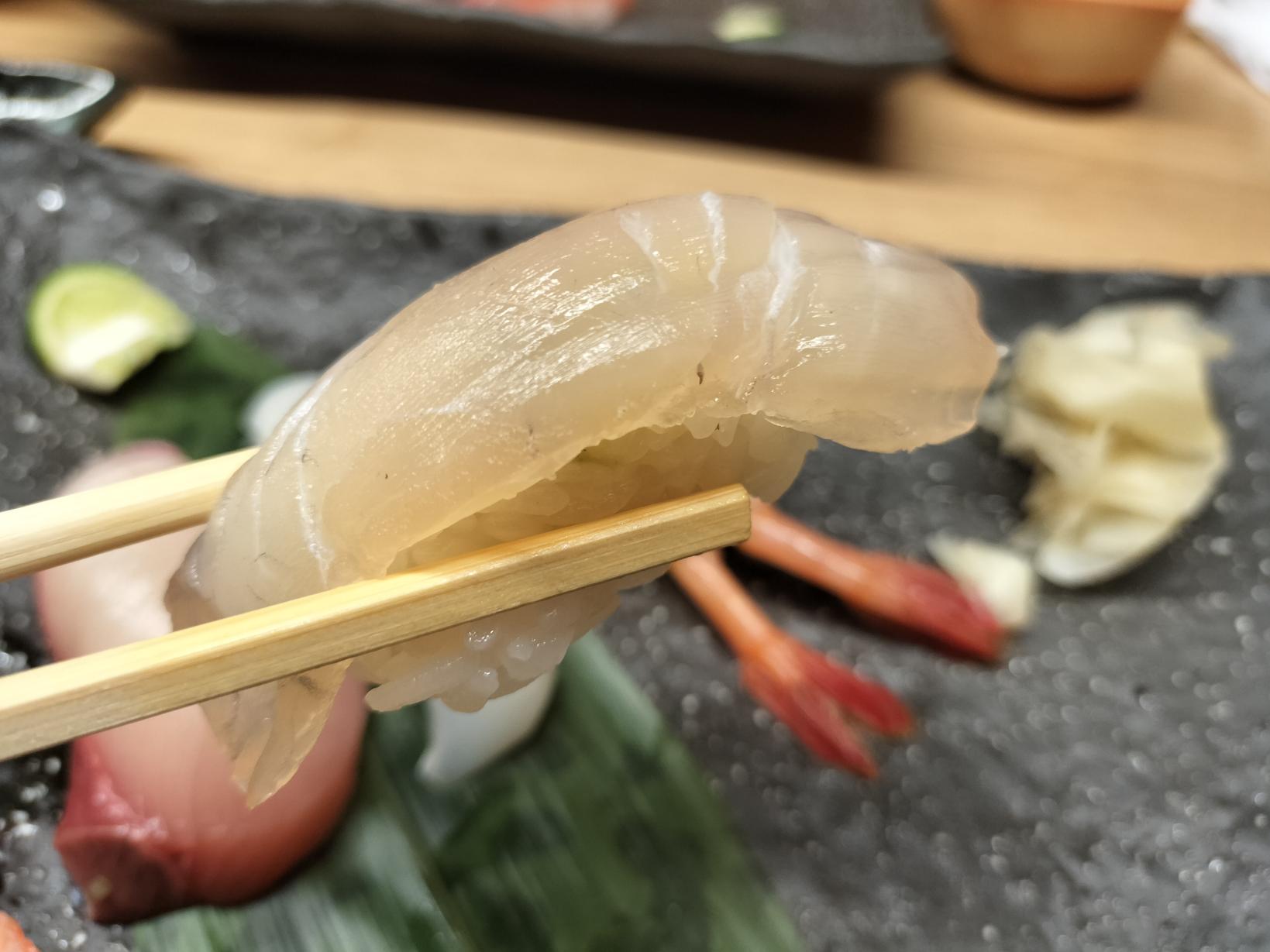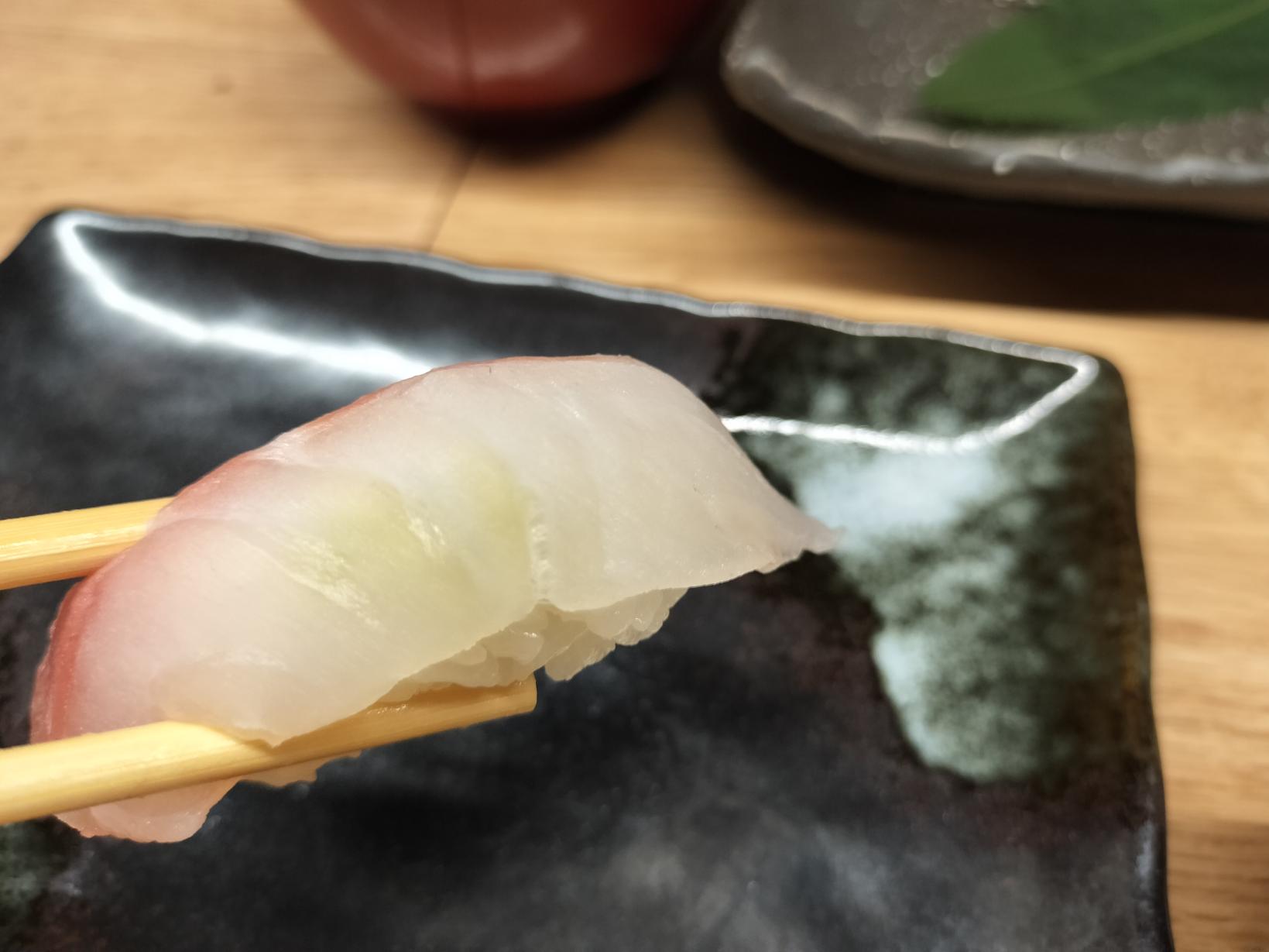富山育ちの私が珍しかったのが、「おこぜ」。「おこぜ」はグロテスクな外見と背びれに毒のある魚で、専ら回転寿司派の私にはお目にかかることのないネタでした。身が厚く、もちもちした食感でとても美味しかったです。