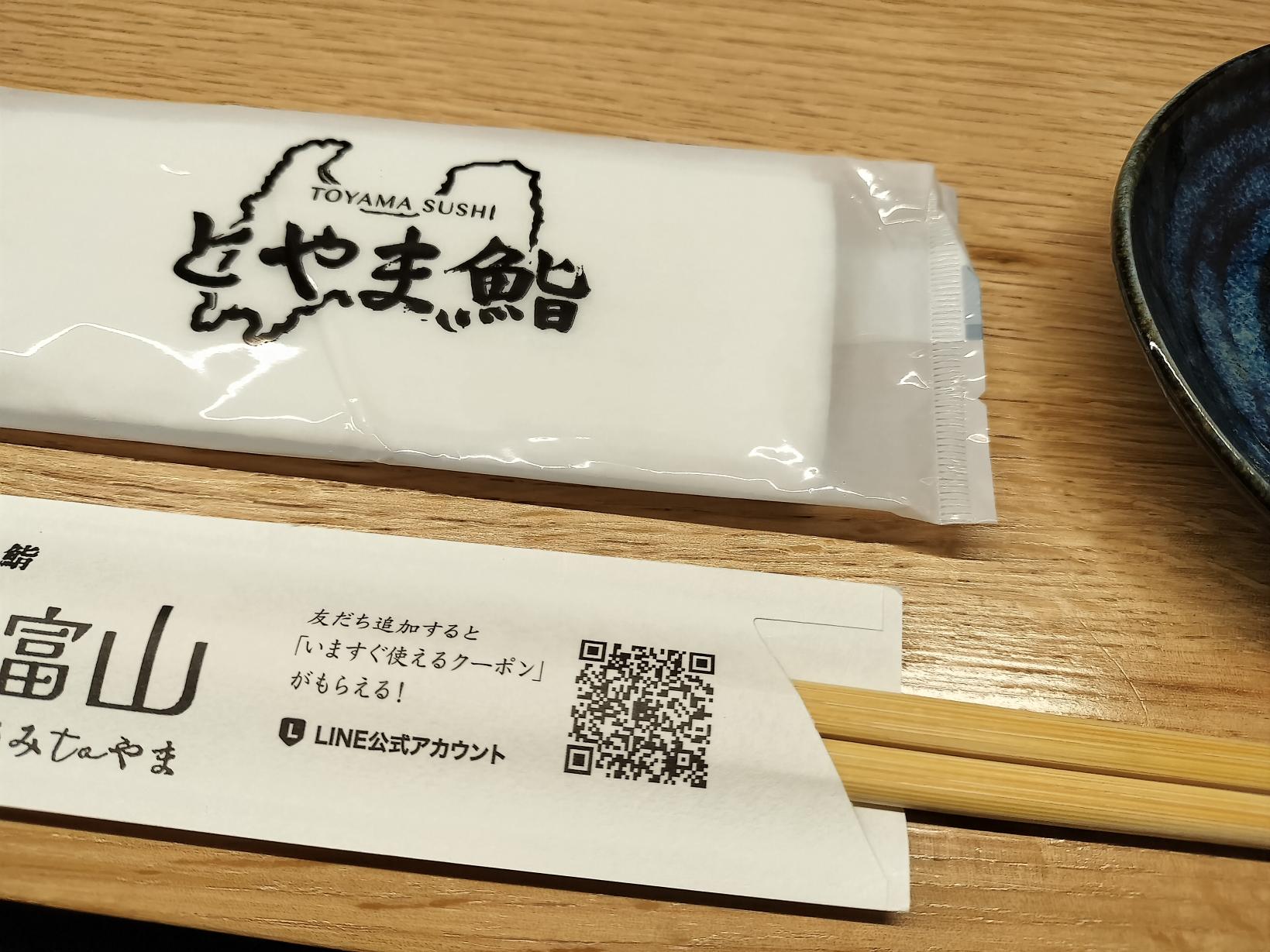 箸のQRコードでLINE公式アカウントの友達になると、クーポン使用でさらに鮨を一貫いただけます。サービスは「真鯛」のにぎりでした。予約特典と合わせて合計12貫の鮨が食べられました。美味しいお鮨を追加で食べられてとてもお得!満足です(サービスは富山湾鮨ではありません)。