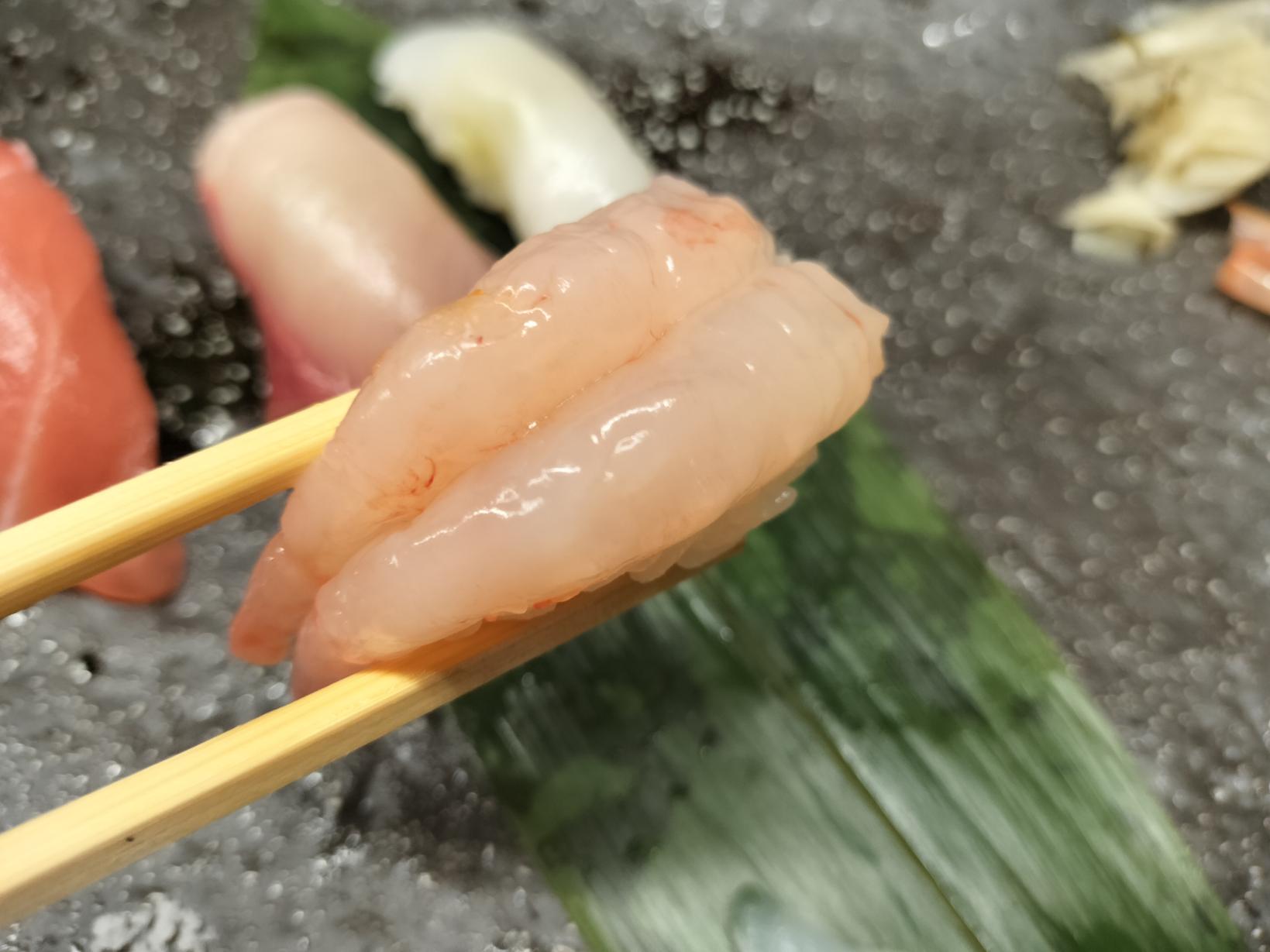 甘エビは北陸でお馴染みの海老。本当に甘いんです!富山のスーパーでは刺身や煮物用で販売されています。煮物をつくる際に甘エビを多用している私にとってはいつものネタではありますが、鮨はとっても大きくて立派な甘エビが使用されるのでやっぱり美味しさは格別ですね。