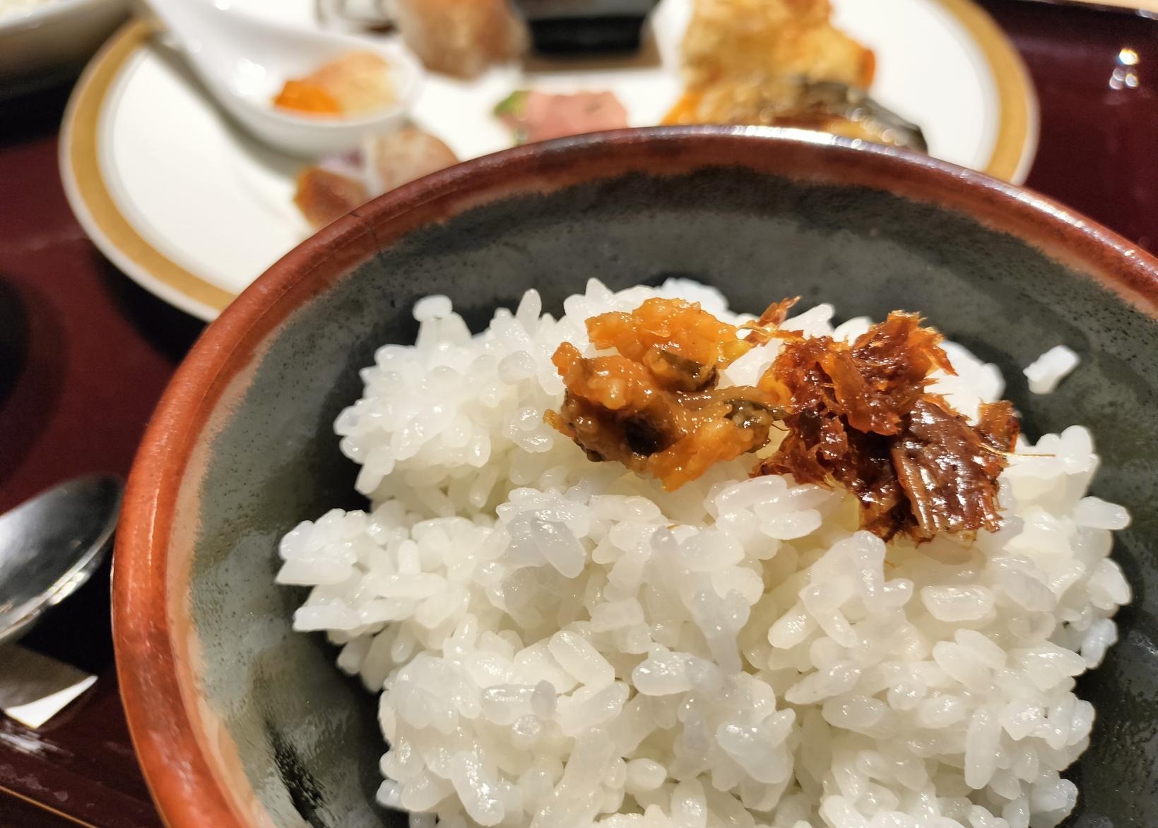 富山の美味しい水で炊かれた県産コシヒカリはつやつやです。この美味しい米の上にのせて食べるのは、富山のごはんのお供。富山県氷見市のブランド牛「氷見牛」の氷見牛味噌、「富山湾の宝石」と言われる「白海老」の白海老おかか、地酒にも合う「イカの黒作り」は是非食べて欲しい味覚。ごはん×お供で美味しさ倍増です。