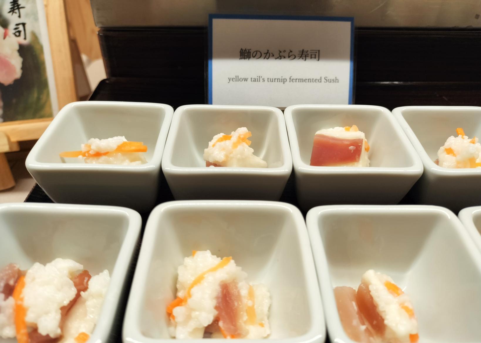 「かぶら寿し」は、富山の冬の味覚。かぶらの間に鰤を挟んで米糀で漬けたかぶら寿しは、風味豊かでまろやかな美味しさです。富山ではお正月にも食べるハレの日のご馳走。日本酒とも合いますよ〜。