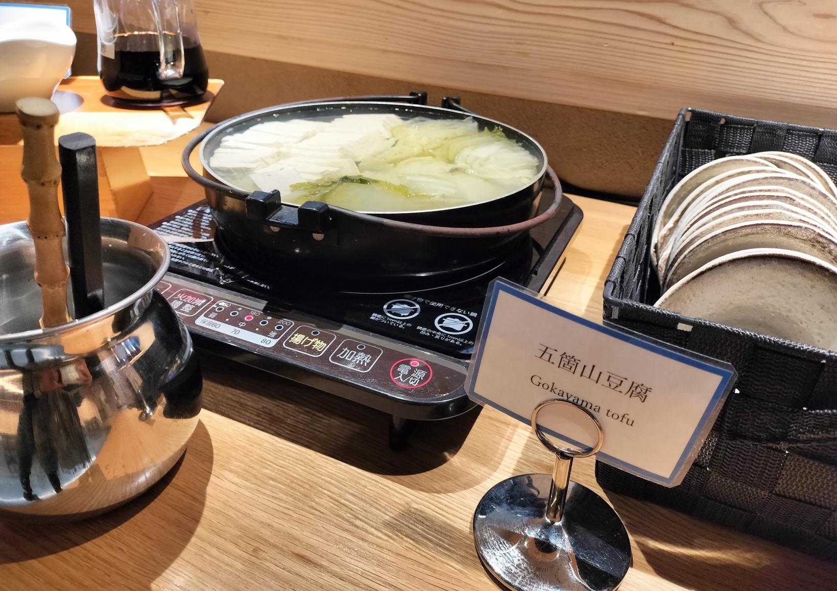 世界遺産「五箇山」で伝統的につくられている「五箇山豆腐」を湯豆腐で。縄で縛っても壊れないほどのしっかりとした豆腐は優しい美味しさ。