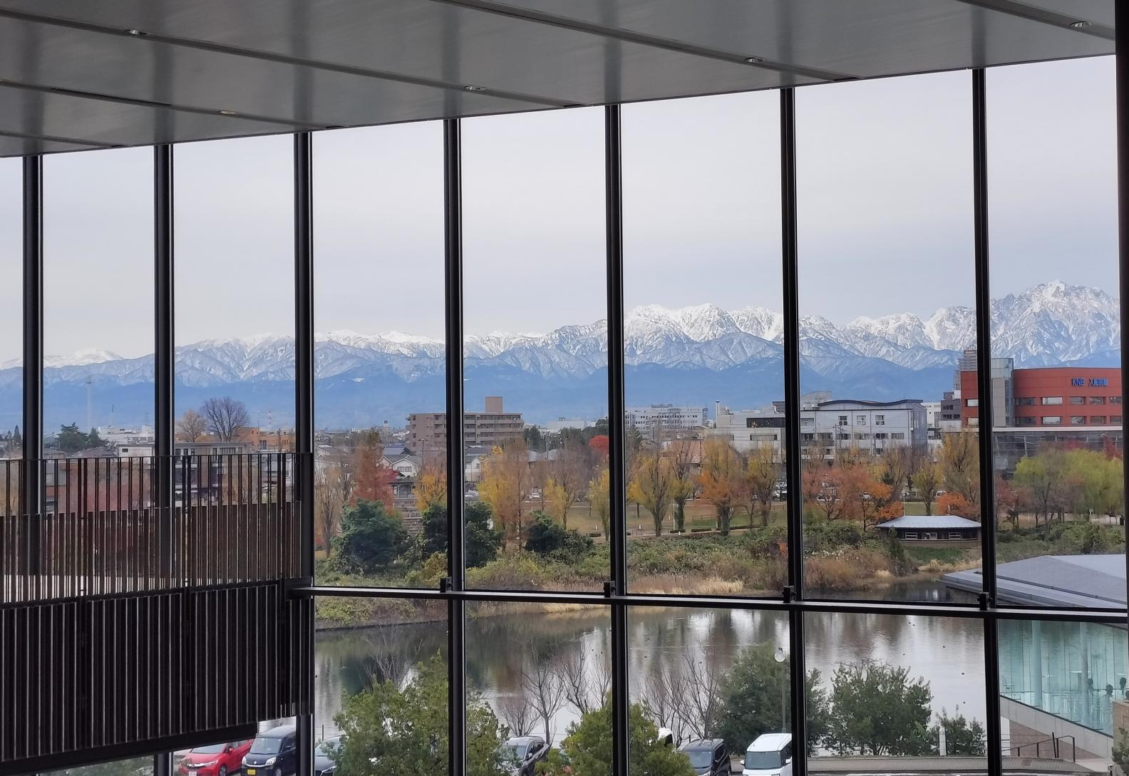 今回のプランでは、部屋から立山連峰が一望できます。宿泊当日はよく晴れており、立山連峰がくっきりと見えました。