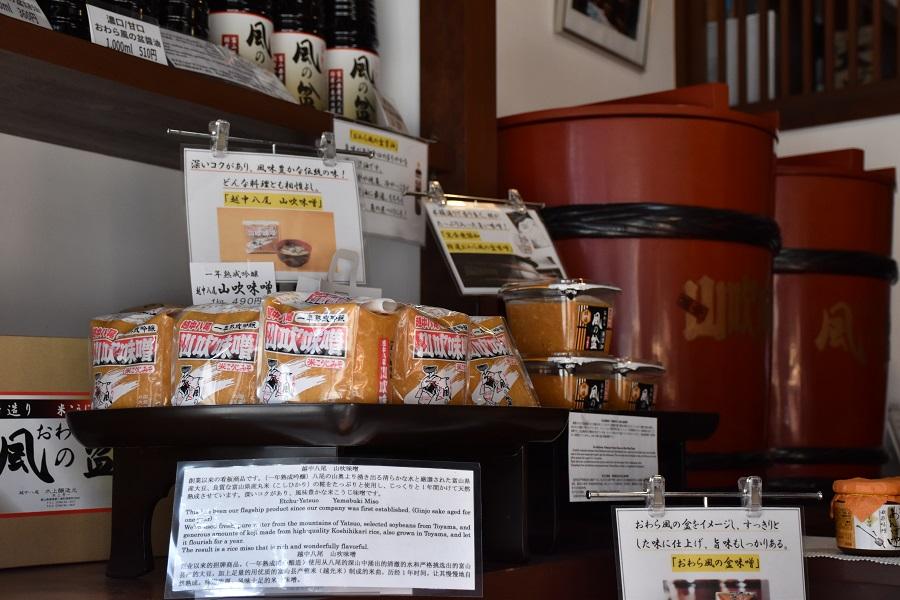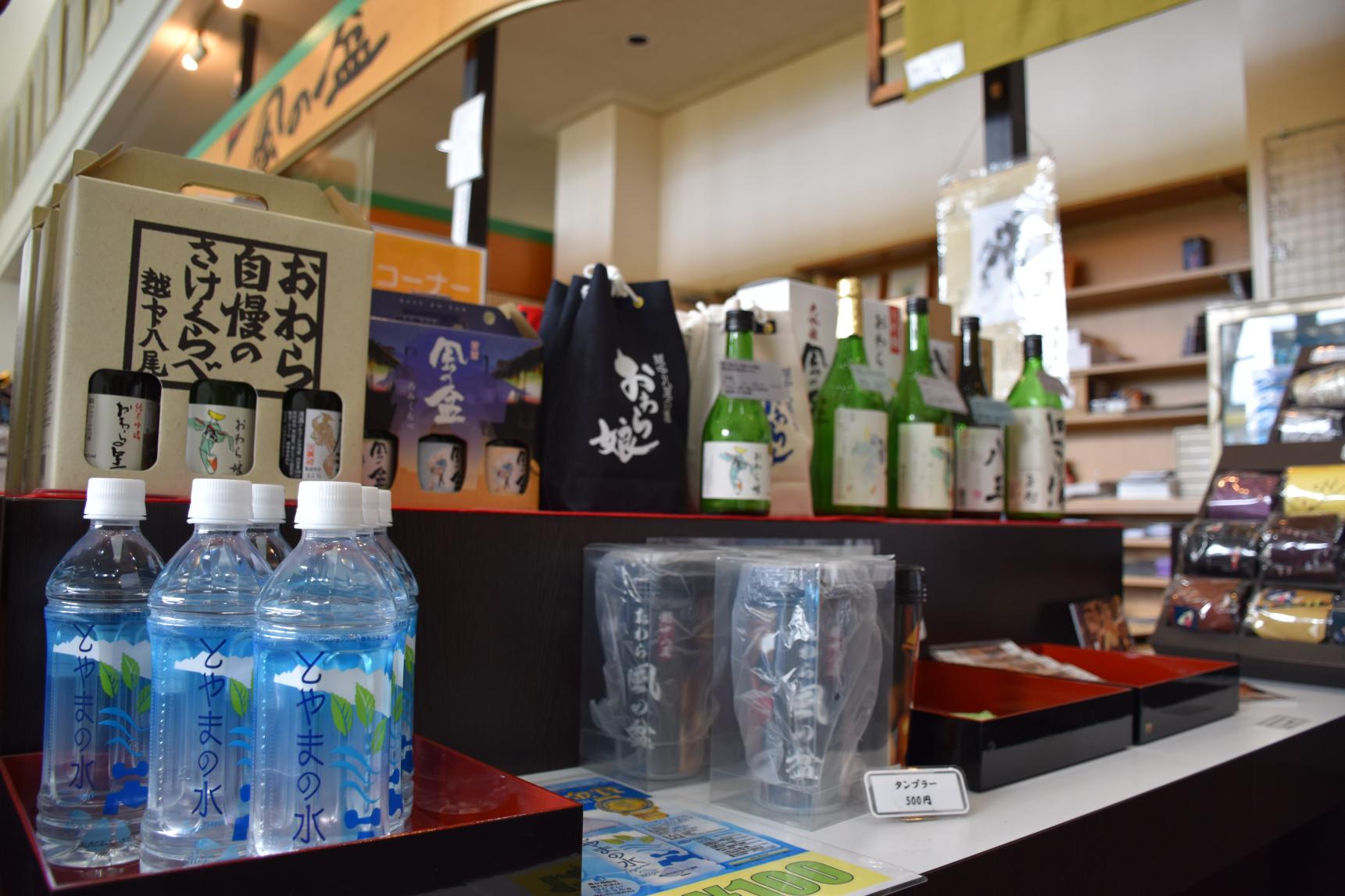 旅の最後はやっぱりお土産がお楽しみ!八尾曳山展示館の入り口近くにお土産が多数販売されています。「おわら」関連はもちろん、地元の食品も購入できます。お気に入りを見つけてくださいね。