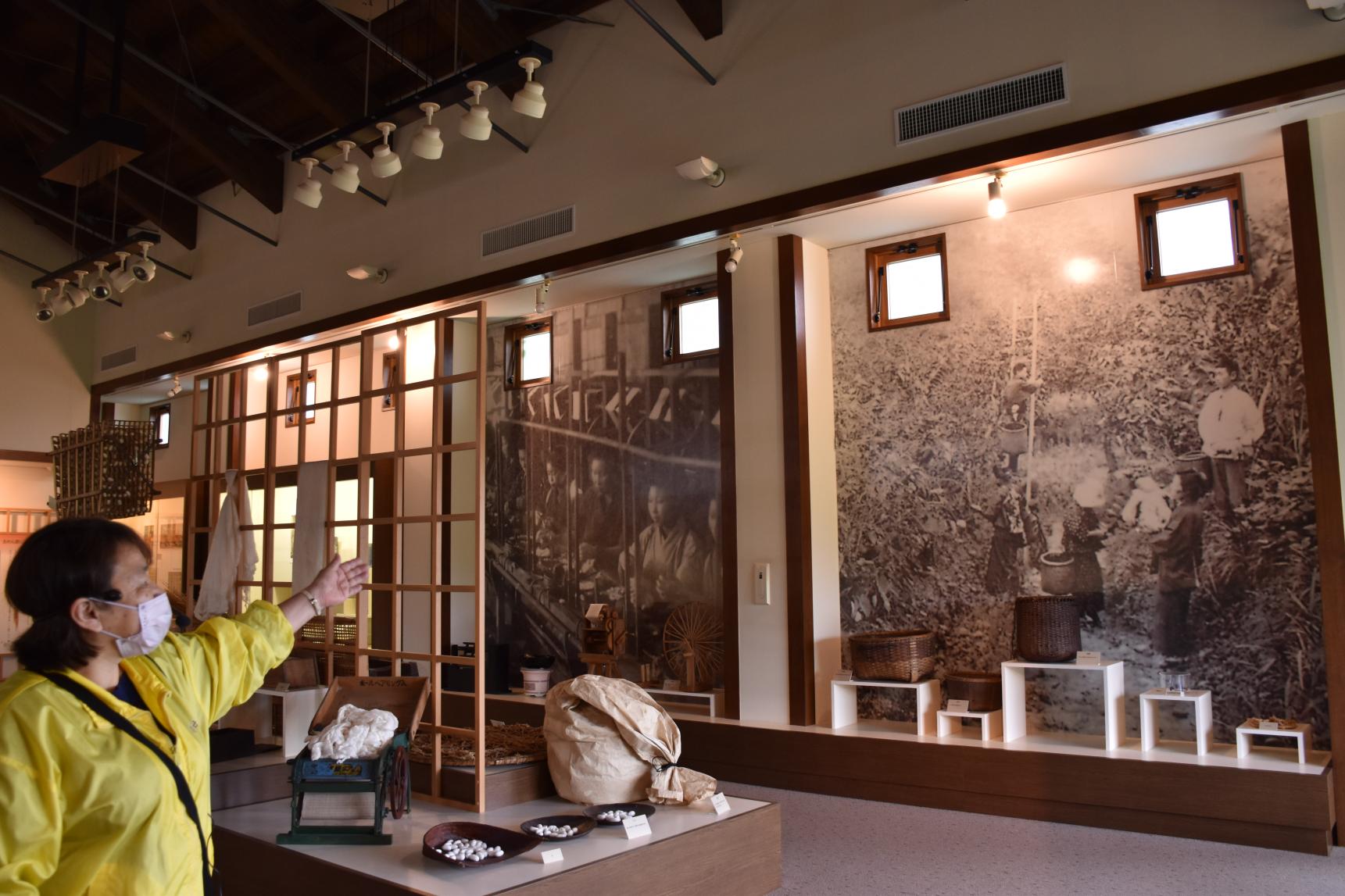 館内の一番奥は中心産業だった蚕種や養蚕について知ることができる「蚕と八尾」コーナーになっています。