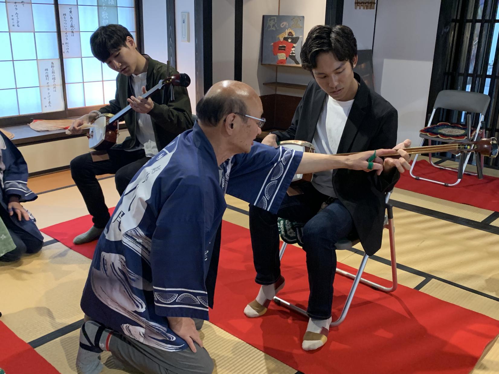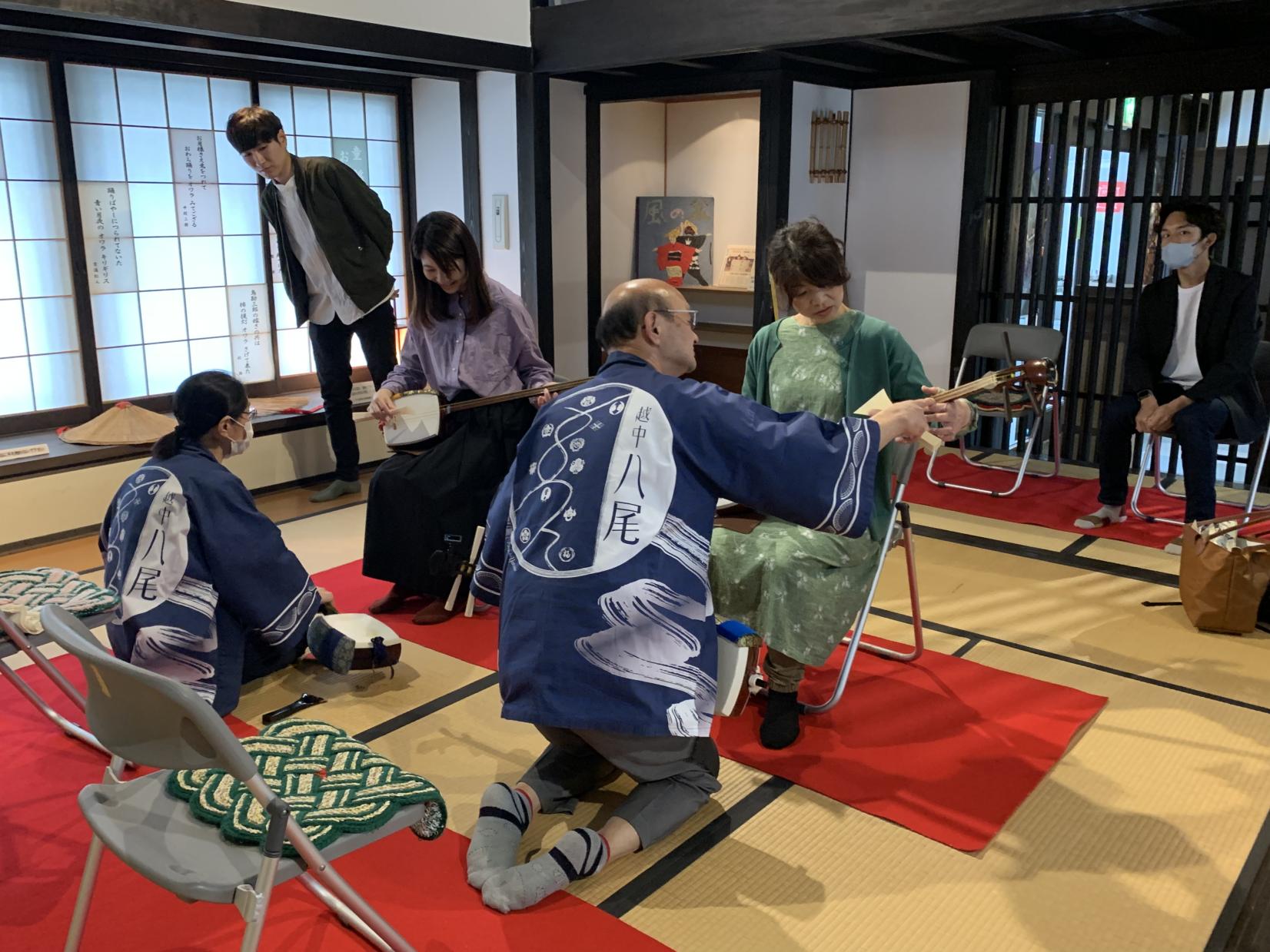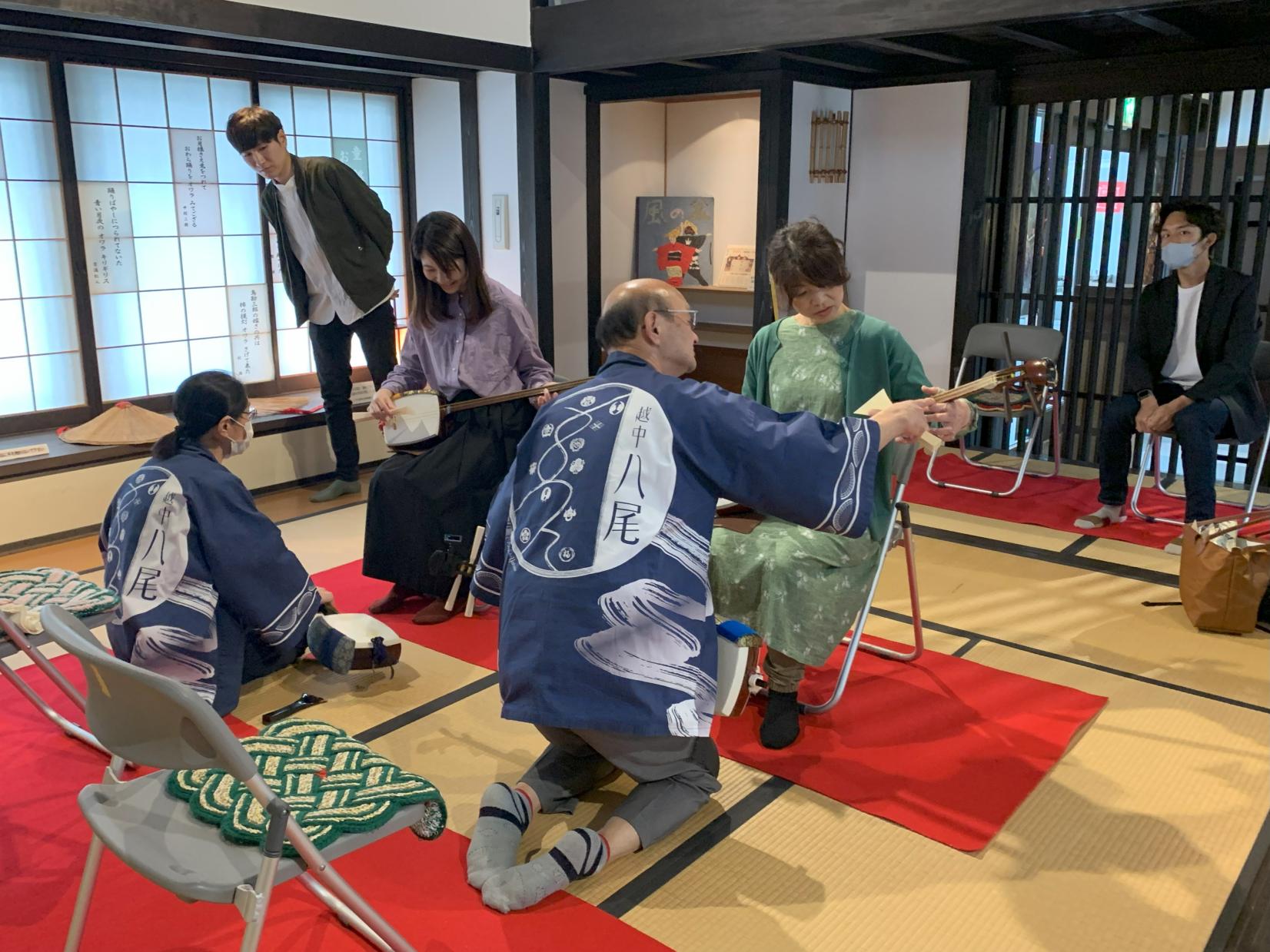 三味線の弦は3本。手前から1.2.3番、弦を押さえる位置が2.4.6番と番号がつけられており、弦と押さえる位置とで三味線の音を出していきます。保存会の方が丁寧に教えてくださり、「おわら」のメロディの始めの方をなんとか弾け?ました。難しかったですが、普段三味線に触れる機会はないので貴重な体験でした。保存会の方の三味線の音色と唄はとにかく素敵でした。やっぱりおわらは良いです。