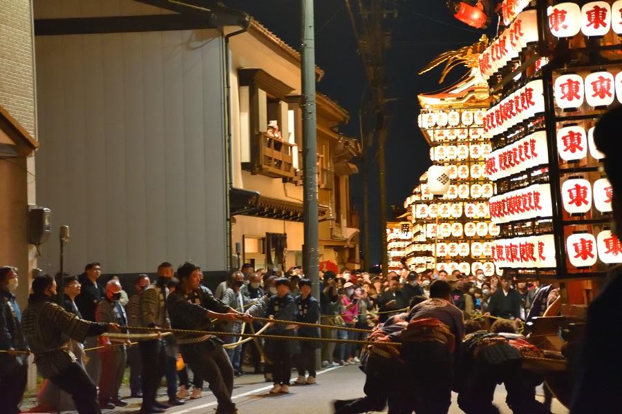 機会があれば是非八尾曳山祭へ。動く曳山を目近で見ることができます。角廻しと言われる道の角を90度曲がる時の力強さは大迫力。きしむ車輪の音や掛け声、お囃子など見どころ聞きどころが沢山ありますのでおすすめですよ〜。