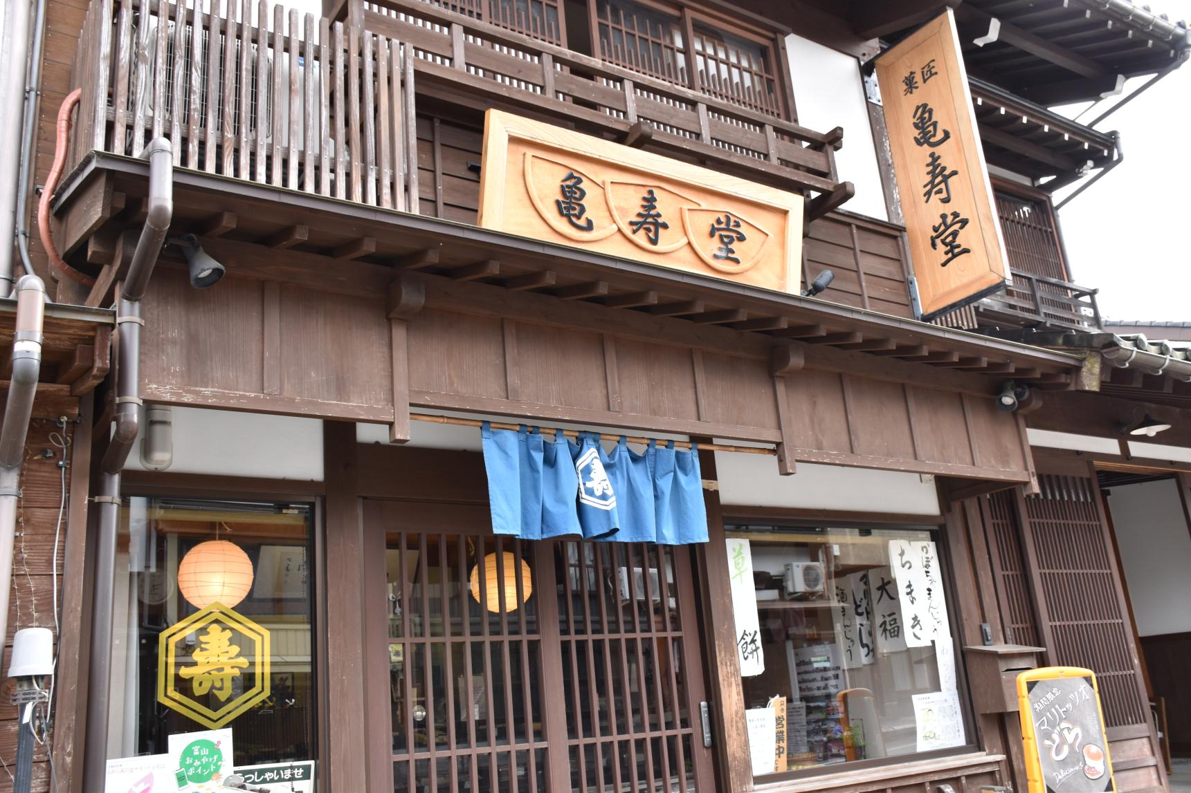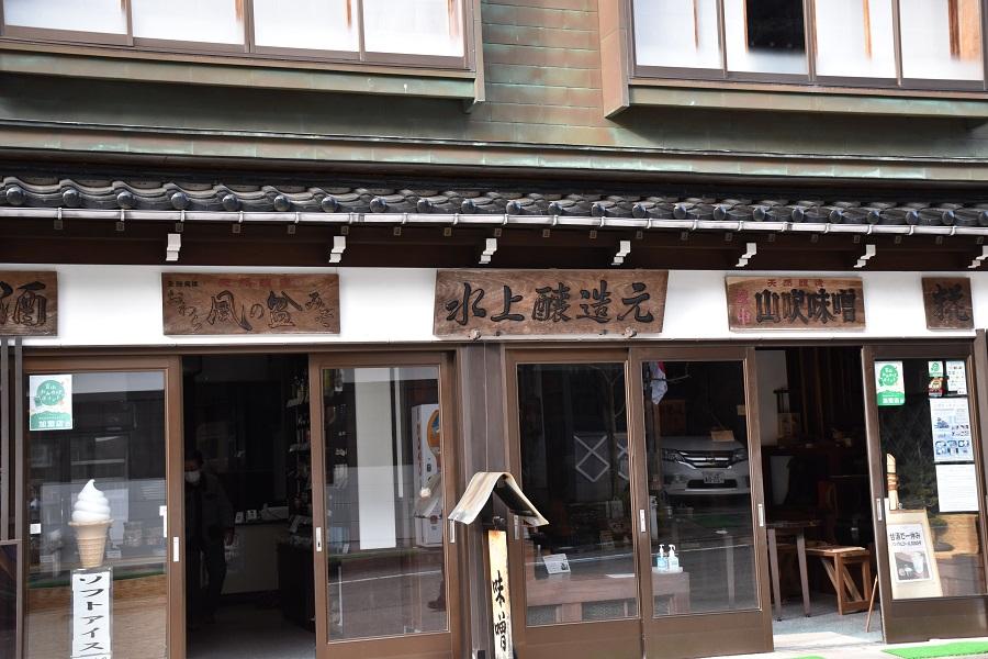 創業130余年の歴史ある味噌醸造元「水上芳一商店」は旧町の一番奥西新町にあります。ここでは糀の甘酒と交換できます。店内の椅子に座って飲むことも可能なのでひと休みできますね。