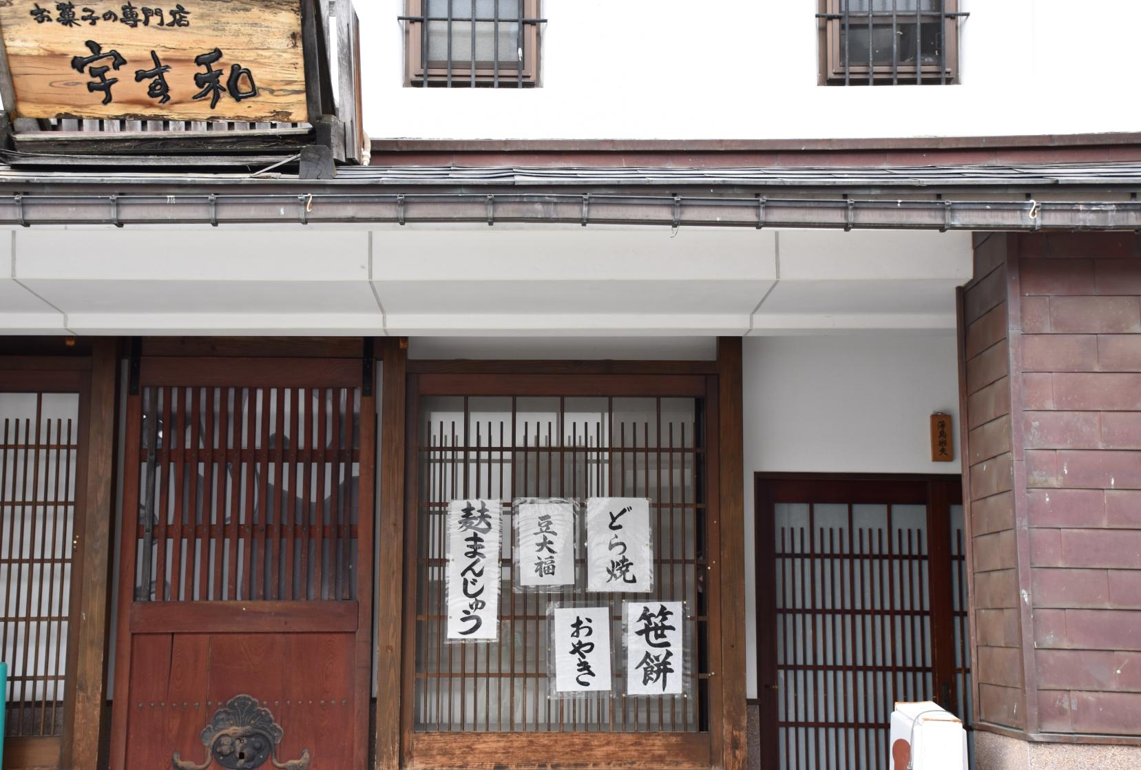 西町にある「うす和(わ)」は和菓子だけではなく、洋菓子やパンも販売しています。こちらでは女踊りの形をした「おわら小町」と交換できます。イートインスペースもあり、ひと休みも可能です。店前のベンチに腰掛けて休むこともできますよ。