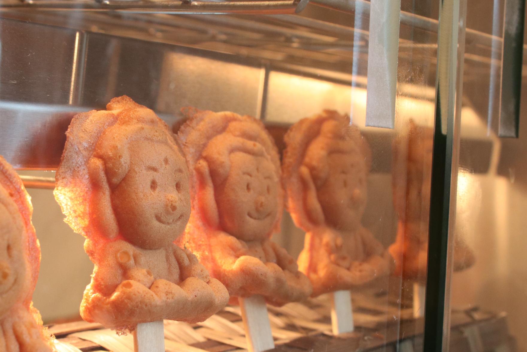高岡銅器でできた焼き型で焼いているオリジナル商品「大仏カステラ」も人気。木の棒がついているので、カフェの外に出て大仏さまとの記念写真を撮ってみてください!