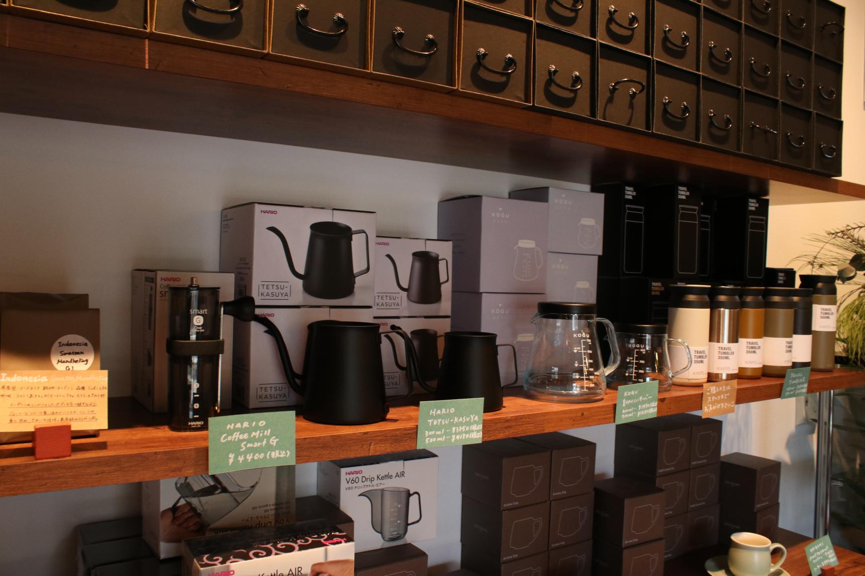 店内にはテイクアウト以外にも、お土産にできるスイーツやコーヒー豆が置かれています。