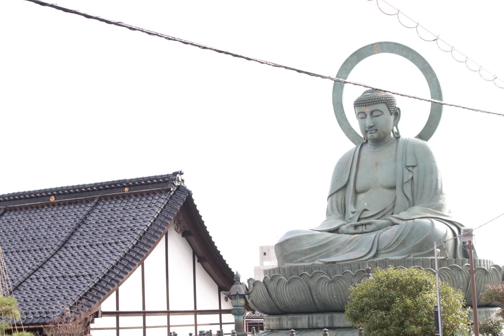 高岡大仏は、銅器日本一の高岡の象徴的存在。その美しいたたずまいから、日本一の美男とも呼ばれる阿弥陀如来坐像で、高岡市民にも、観光客にも親しまれる町なかの大仏さまです。ちなみに私は、大仏さまを初めて見た時、あまりにイケメンすぎて二度見しました。
