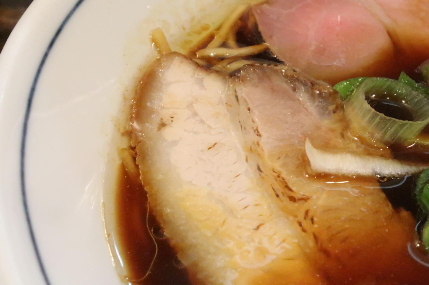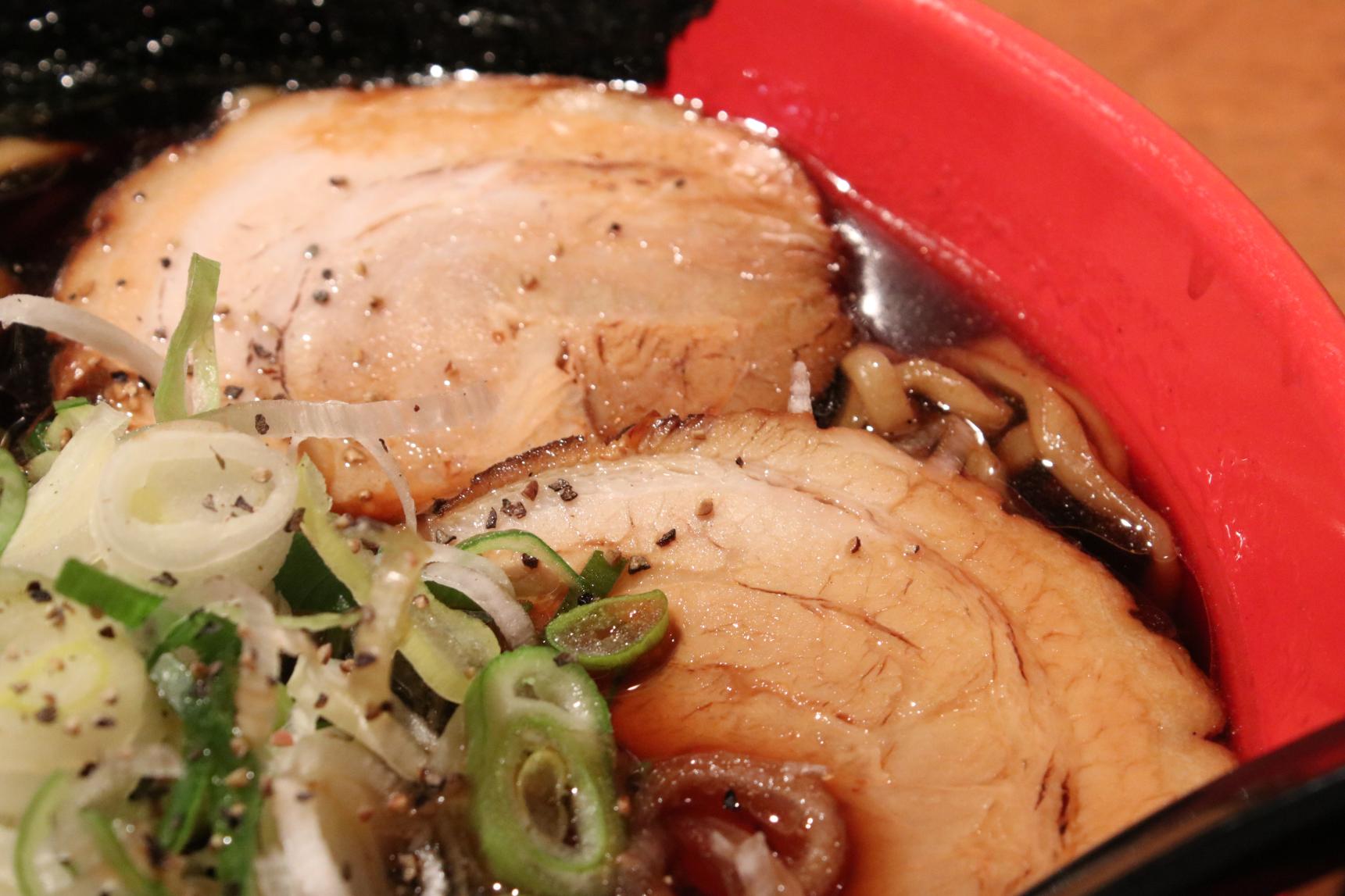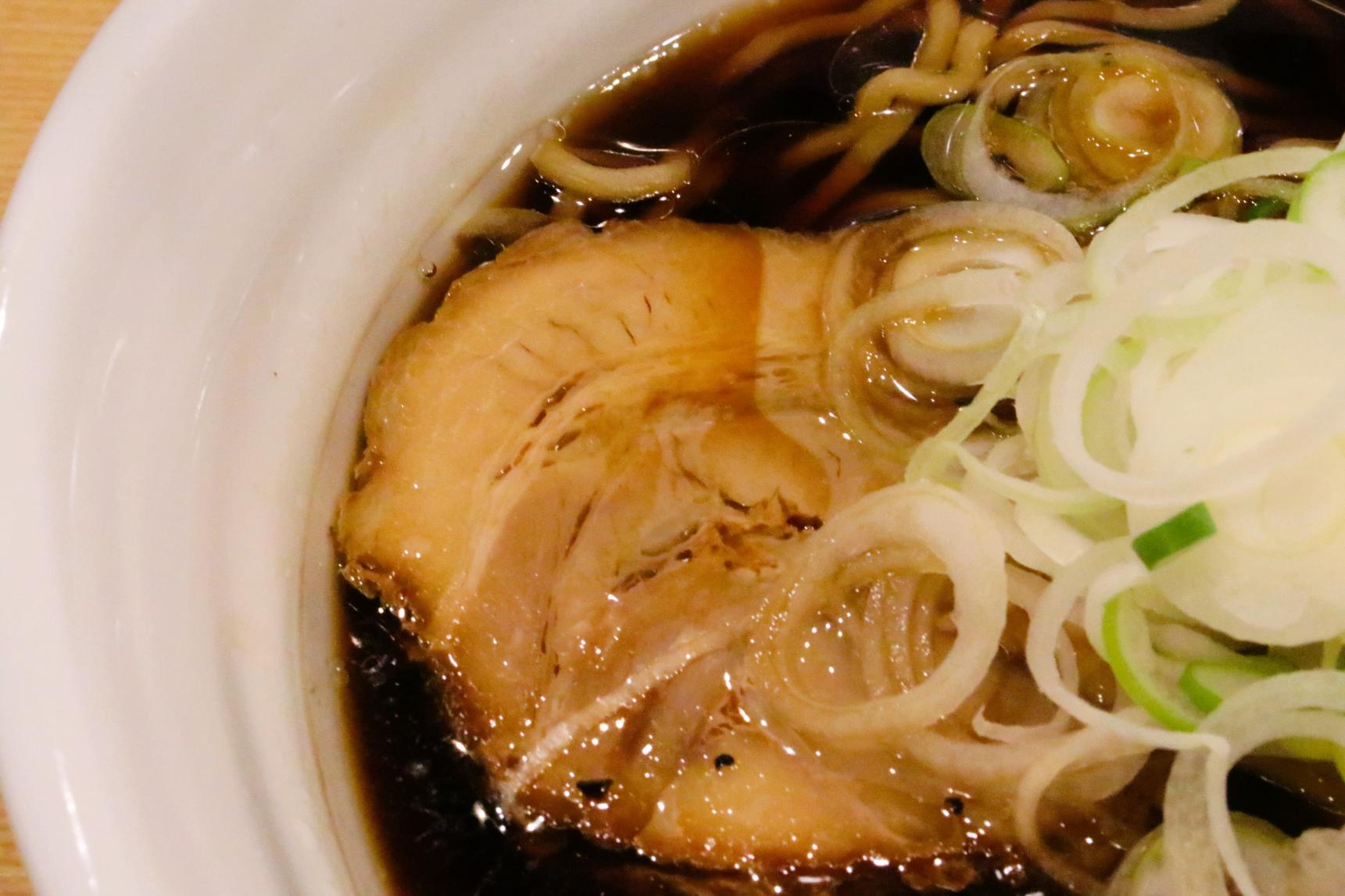 食べてみると「黒醤油ラーメン」は、その黒い見た目とは裏腹に、やさしい味のスープで驚きでした。ほのかにチャーシューのうまみが残るのが好印象です。それもそのはず。スープにもチャーシューの煮込みダレが入っているのです。焦がし醤油の香ばしさも効いていて、もちろん、スープを最後まで飲み干せました。