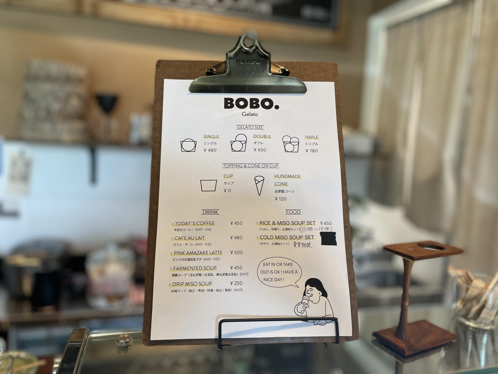 お店は、駐車場完備。すぐ横に停められます。場所は少し分かりにくいところにあるのですが、地図やカーナビに従って進むと途中に「BOBO.」の案内板があるので、矢印の方向に進んでください。