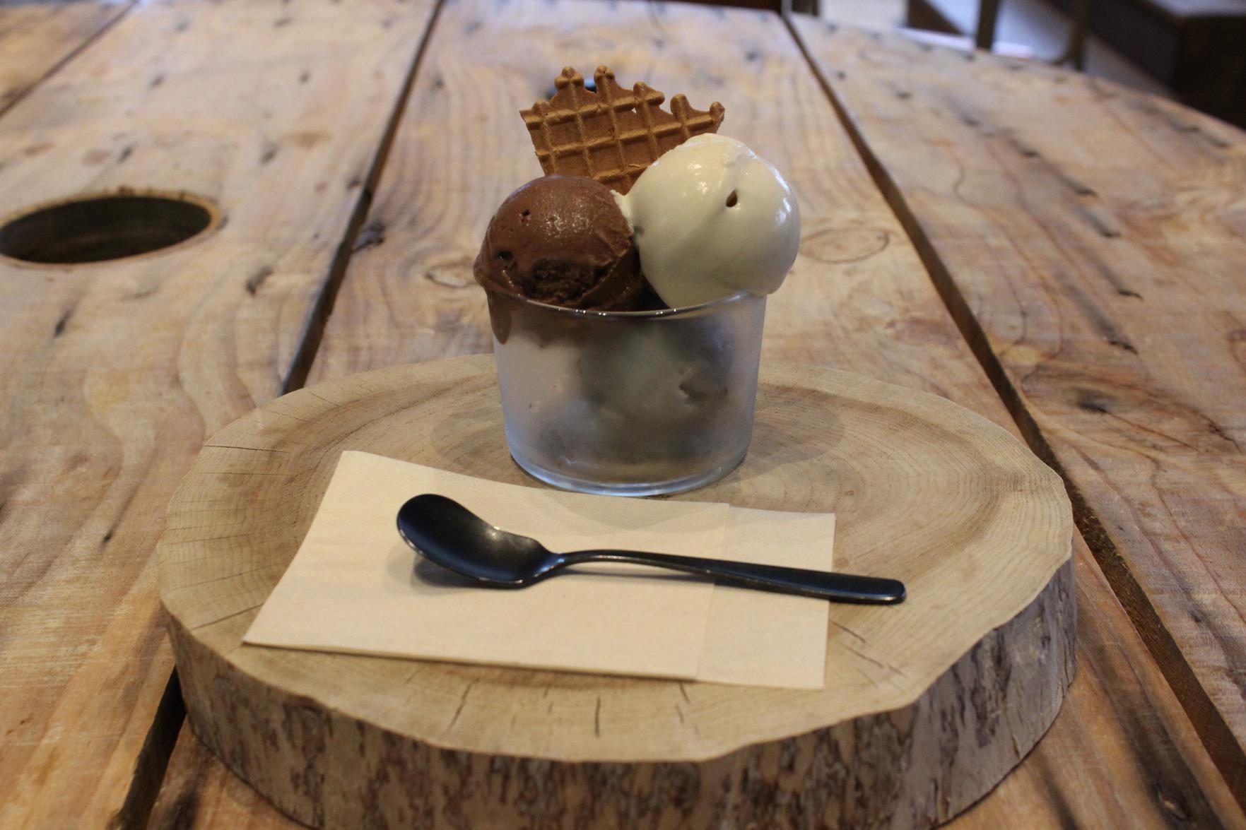 まずは、「リッチチョコレート」から。濃厚なココアのおいしさが、まさに言葉通りリッチなジェラートでした。とても滑らかな食感で、乳製品、卵が不使用でどうやってこの滑らかさと濃厚さを作り上げたのだろう、と驚きました。