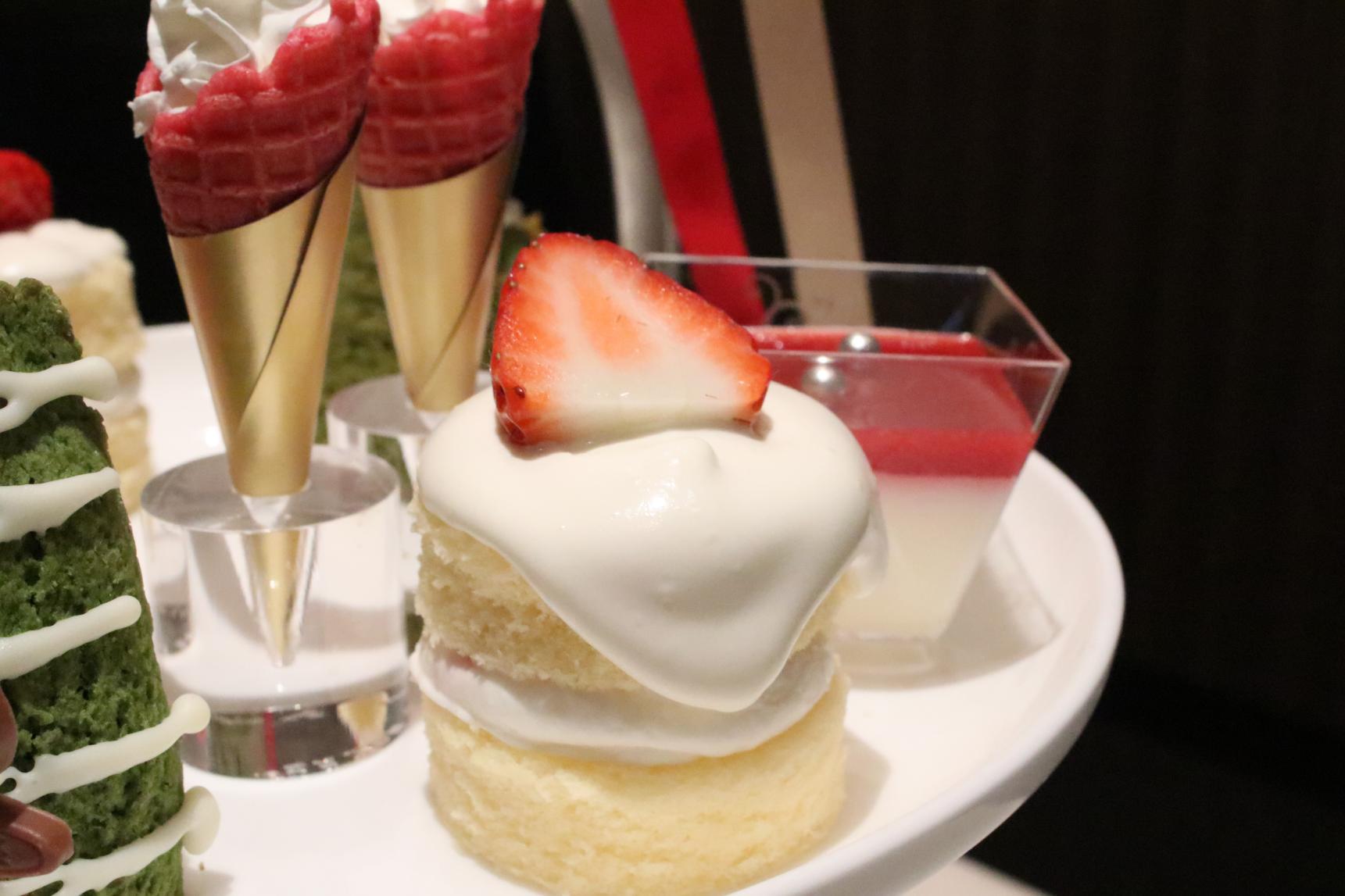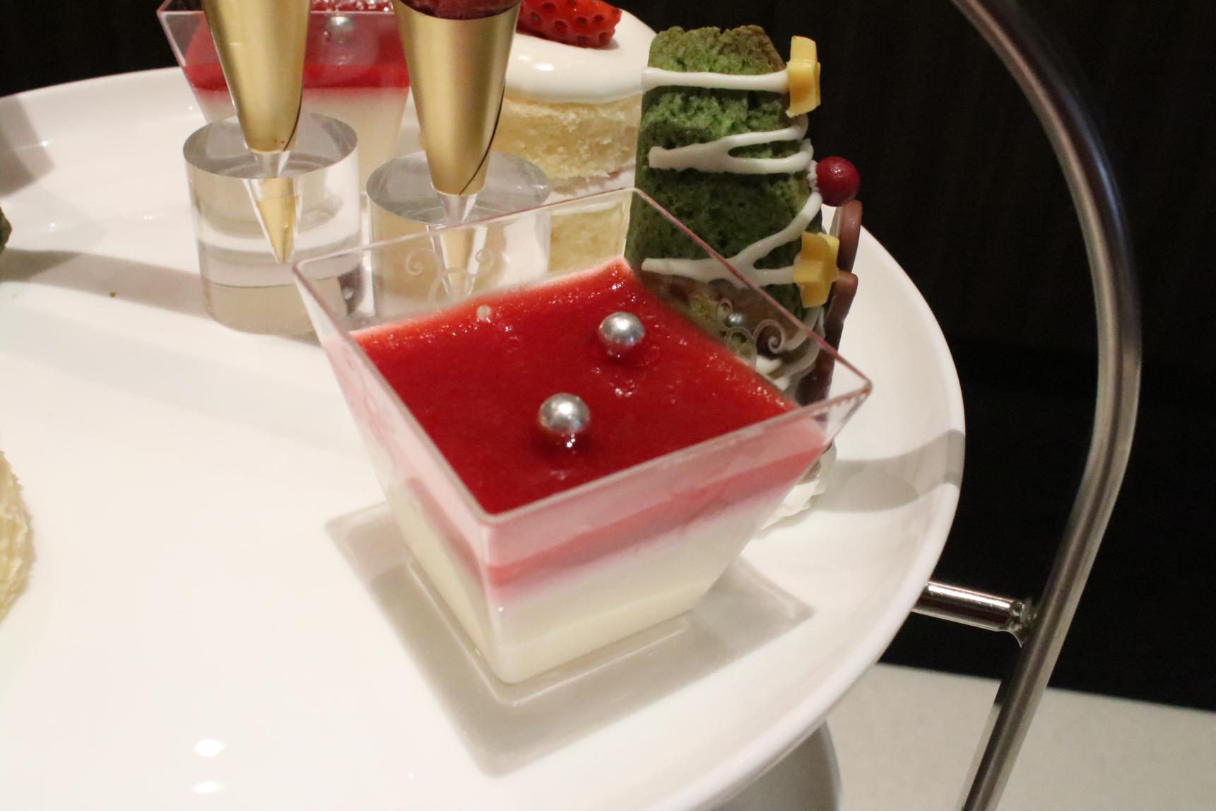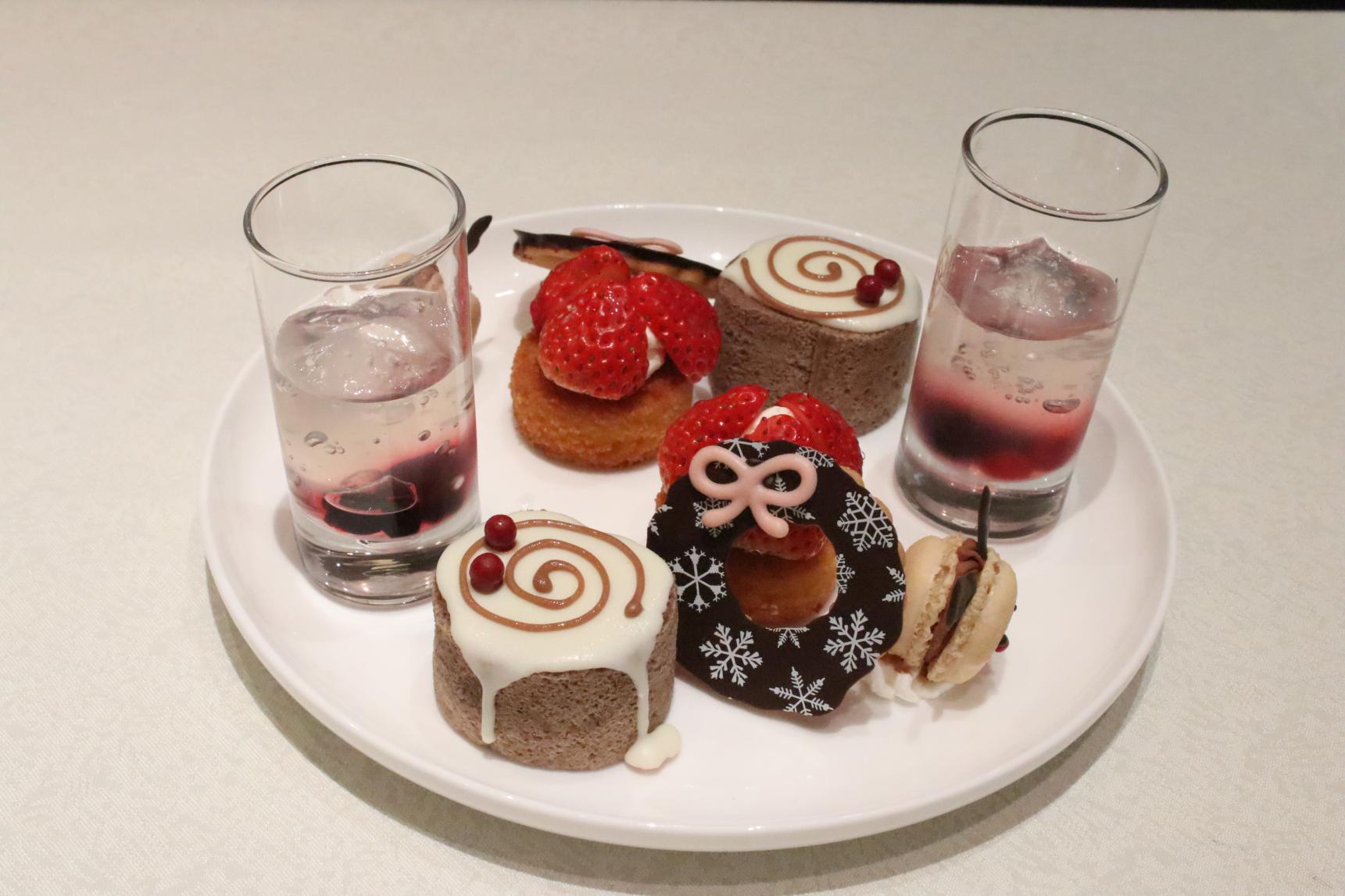2段目の「2nd-12/24stage」は、12月24日のクリスマスイブがテーマ。シロップのしみたタルトの上に新鮮なイチゴがのった「イチゴタルト」やチョコのおいしさが詰まった「木こりのブッシュ」、ベリーの酸味が口の中をリフレッシュさせてくれた「イルミネーションゼリー」や、コーヒー味の「トナカイマカロン」などが置かれており、バランスの良い一皿でした。