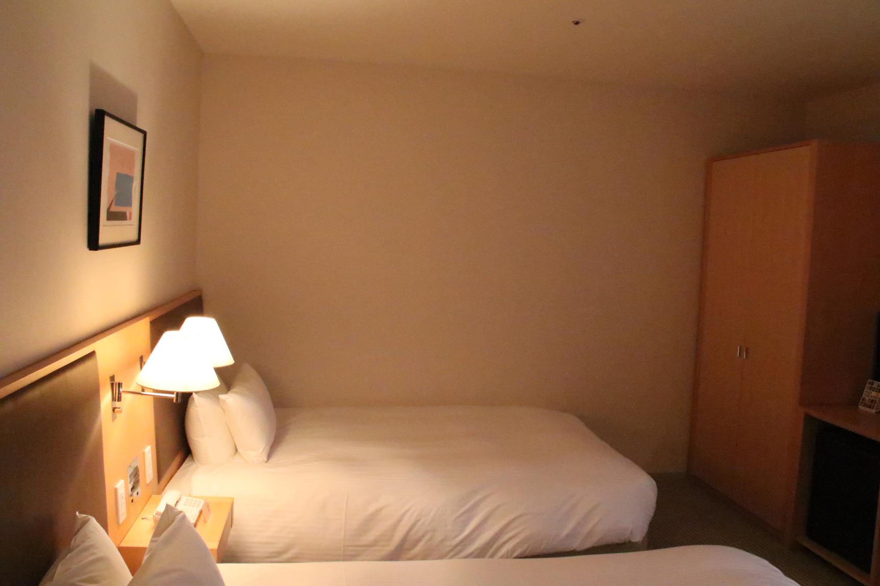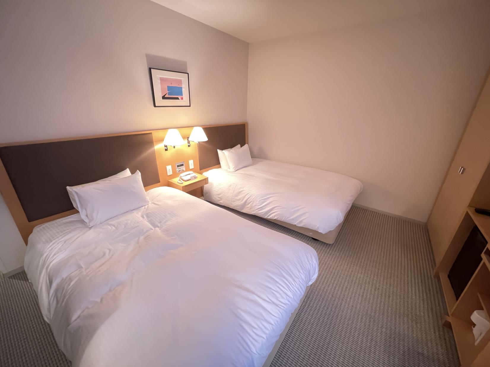 今回は10階のスーペリアツインルームに宿泊。ベッドから洗面台、作業スペース、クローゼットまですべて広々とした作りになっており、快適に利用することができました。駅前のホテルの10階なので、景色も抜群でした。今回はあいにく曇りでしたが、晴れていると美しい立山連峰が見えるそうです。