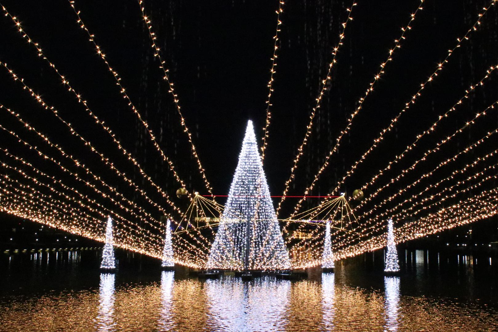 環水公園のイルミネーションは、広い空間でゆっくり見られるようになっています。色とりどりの光と、光を反射した運河の様子が本当に美しかったです。