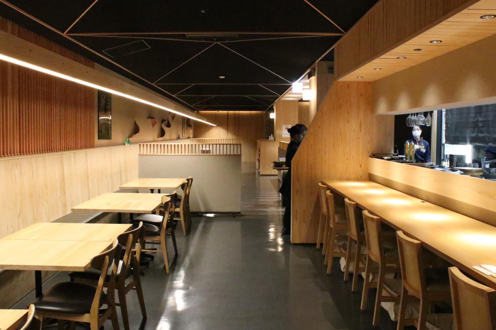 私は、駅前にある「MAROOT(マルート)」4階にある「とやま鮨 海富山(うみとやま)」で「富山湾鮨」をいただきました。お店はエレベーターホールのすぐ近くにあるのですが、中に入るとジャズがかかる落ち着いた雰囲気で、まるで別世界でした。