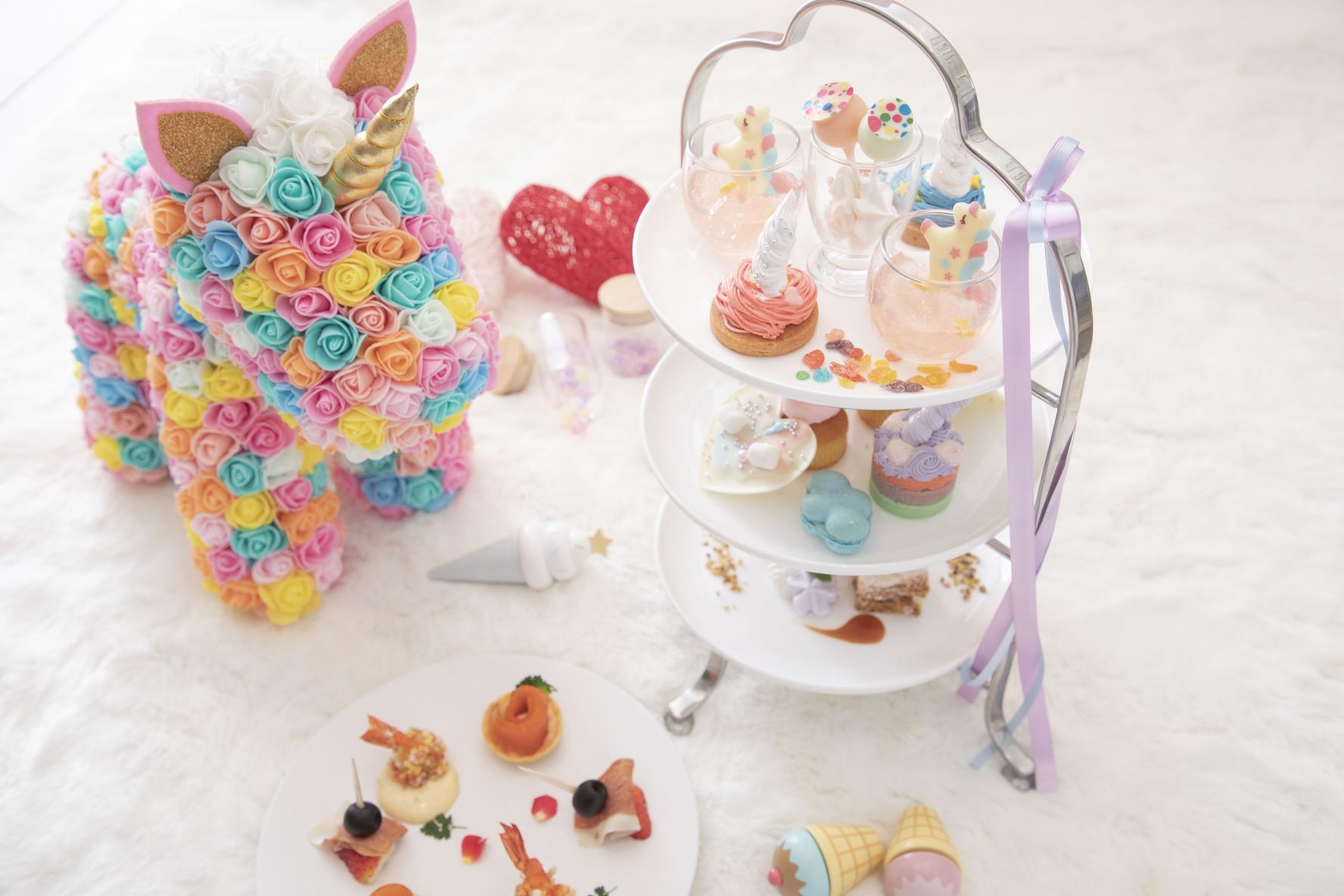 2月1日~3月31日はバレンタインデーやホワイトデーにちなんで、期間限定で「FANTASY AFTERNOON TEA」と題したアフタヌーンティーが提供されます。ユニコーンモンブランやパステルカップケーキなど、「夢可愛い」をテーマにしたキュートでポップでキュンキュンするスイーツ、軽食を堪能するのはいかがでしょうか。