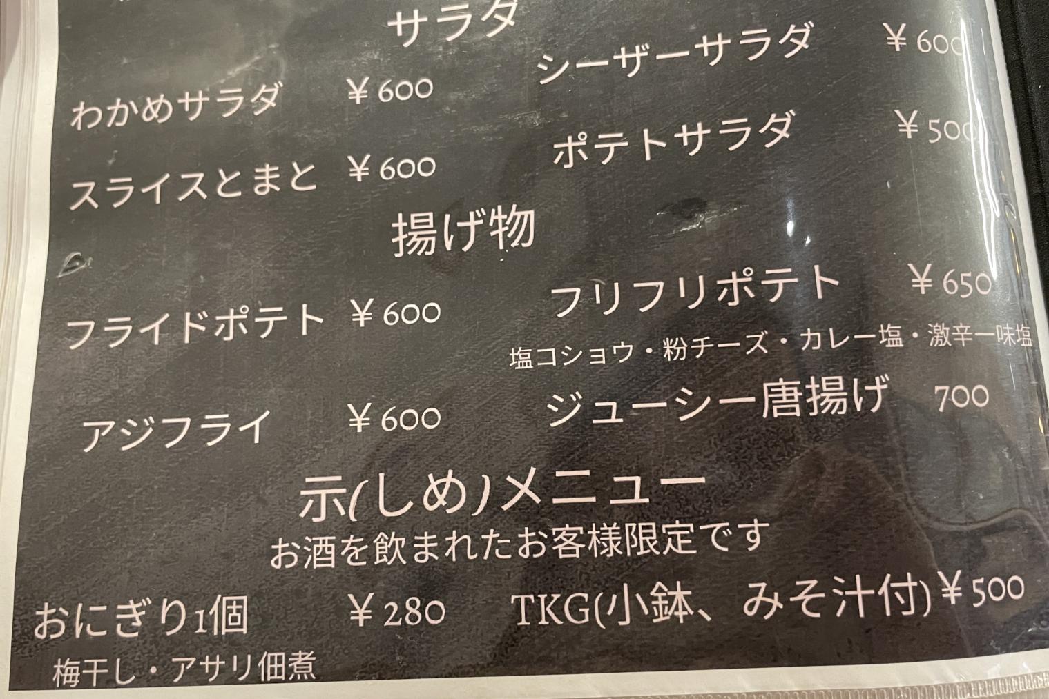 1人で行った時は、日本酒カクテルに挑戦!普段から大好きな「モヒート」を日本酒をベースに作ったカクテルとほたるいかの素干しを頼みました。モヒートは「甘め」と説明に書かれていたとおり、甘さとミントとライムの組み合わせが絶妙で、日々のあれこれで疲れた身体に染みました。つり屋のほたるいかも間違いないおいしさでした。季節によってメニューが少しずつ変わるので、次は季節限定メニューも頼んでみたいです。