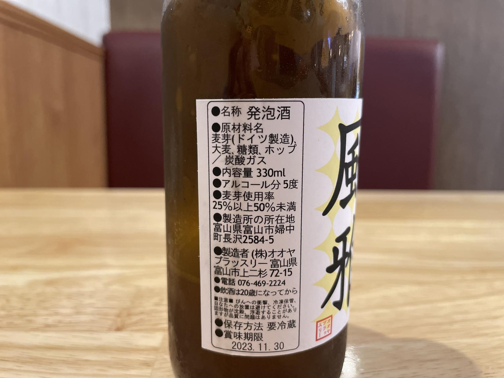 今回、私は「越中風雅(えっちゅうふうが)」という富山市内で作られているクラフトビールを注文。柑橘系のさわやかな香りでシュワシュワ感が心地よく、飲みやすかったです。まさに「風雅」という名前がピッタリのビールだと感じました。他にも富山ならではのメニューとして、若鶴酒造のウイスキーで作られたハイボールもあります。