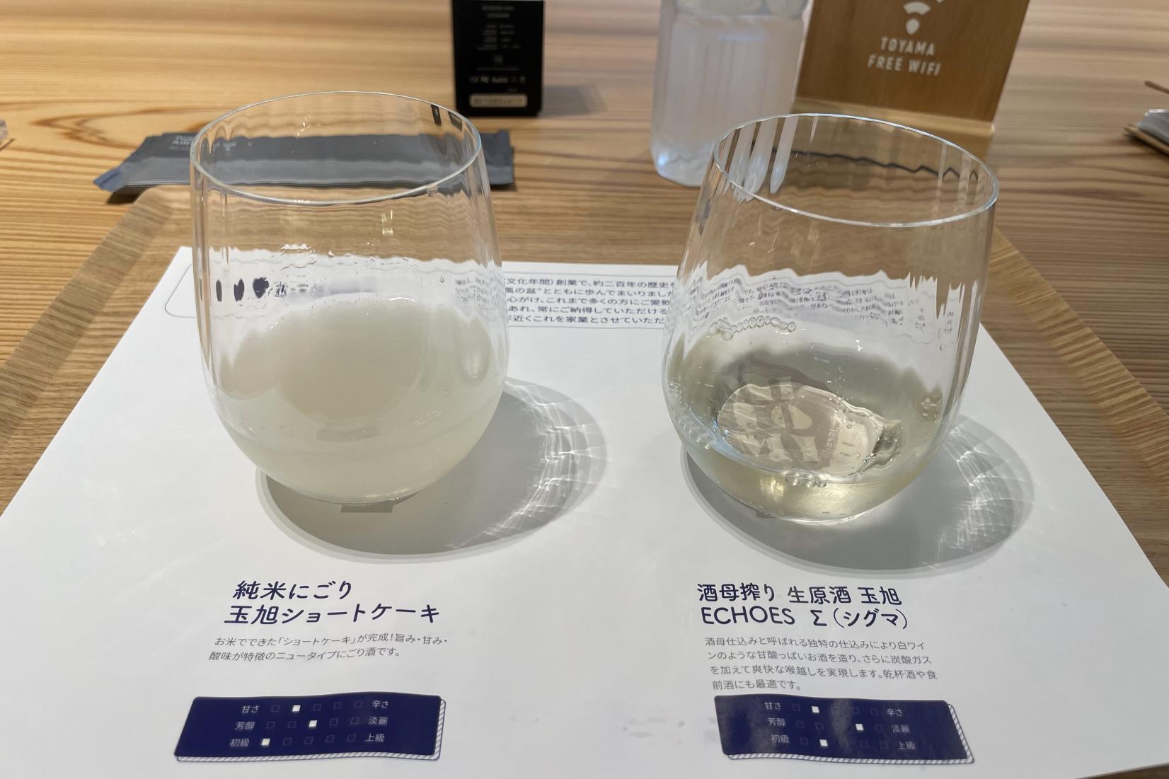 以前、友人と来た時は玉旭(たまあさひ)酒造の「2種飲み比べ」を注文。「ショートケーキ」というお酒は、名前のとおり甘みがあり、心和らぐお酒でした。デザートには、ノンアルコールのメニューからコーヒーと酒粕アイスを選び、堪能しました。お酒の後のアイスって本当においしいですよね‥‥‥!