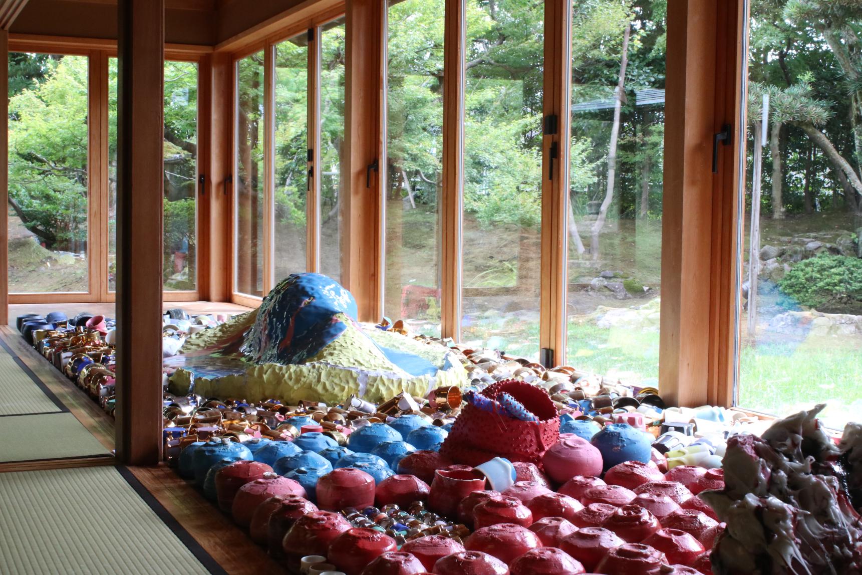 環水公園エリアの会場は樂翠亭(らくすいてい)美術館、富岩運河(ふがんうんが)環水公園、富山県美術館の3か所です。最初に訪れたのは、富山駅から徒歩約10分の「樂翠亭美術館」です。ここでの展示は焼き物、土がテーマ。館内には多種多様な作品が置かれており、焼き物の持つ可能性の大きさに驚きました。