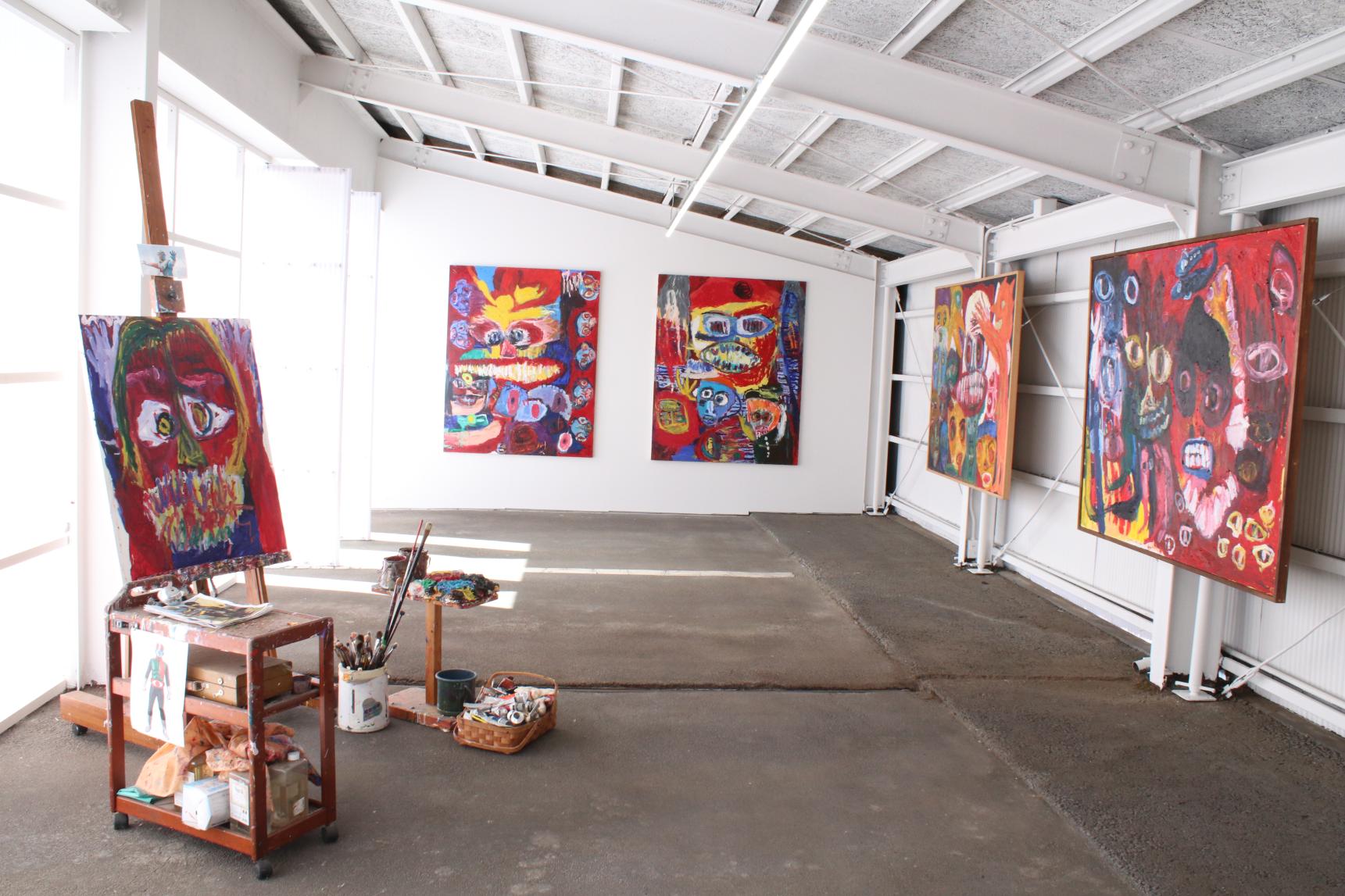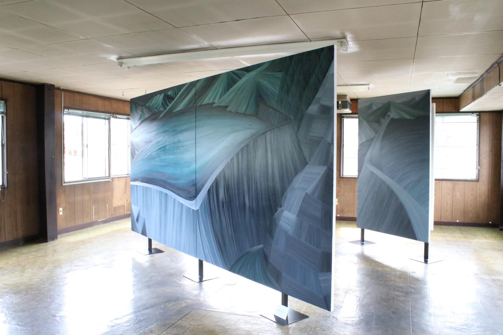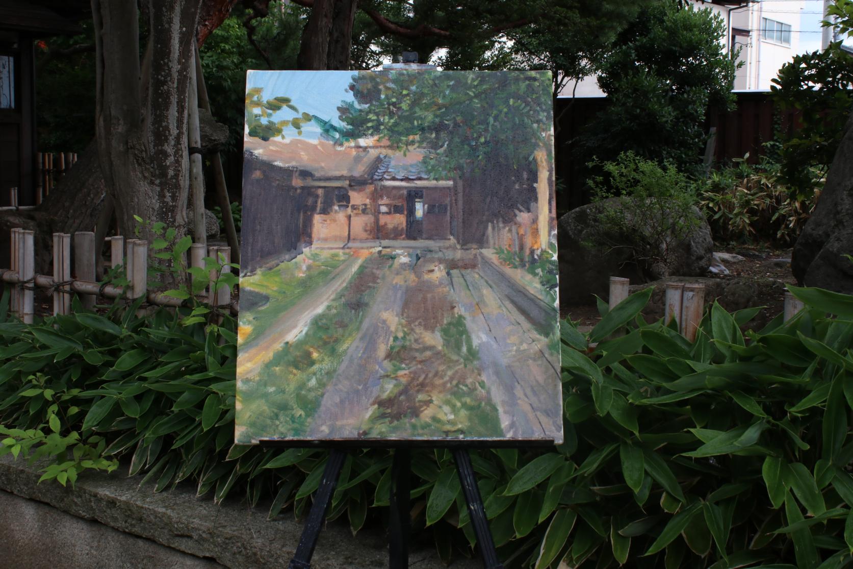 馬場家では、会期中に現地で油絵が進行し、できたものから展示されていくプロジェクトが開催されています。運が良ければ(または事前にSNSでチェックしていけば!)、アーティストの桜井旭さんが描いている様子を見ることができます。
