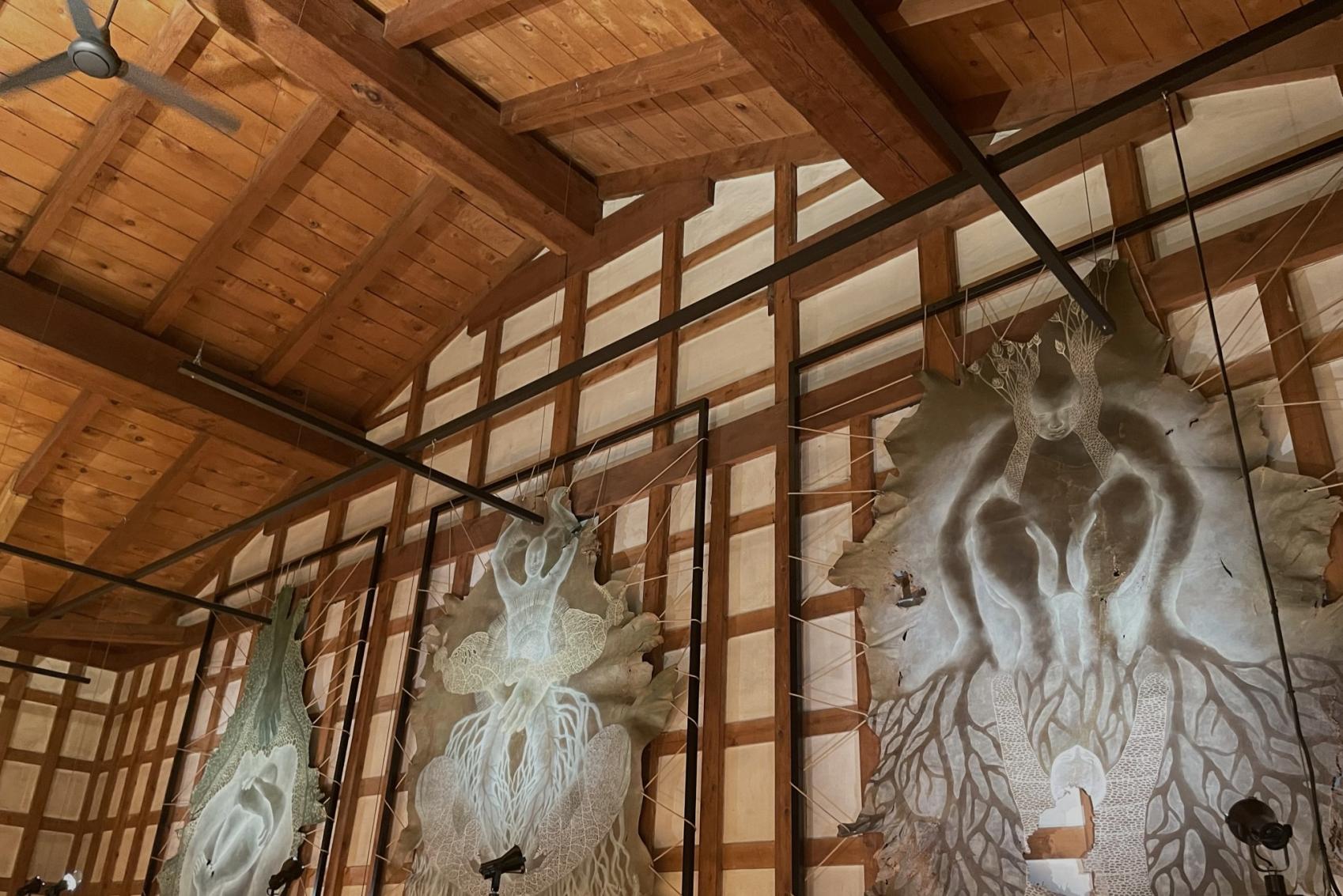 歴史ある街並みが印象的な岩瀬エリアの会場は8か所。すべて徒歩で移動できます。このエリアには、歴史を感じさせる場の雰囲気を生かしたインスタレーション(場所や空間全体を作品として表現するアート)がたくさんありました。