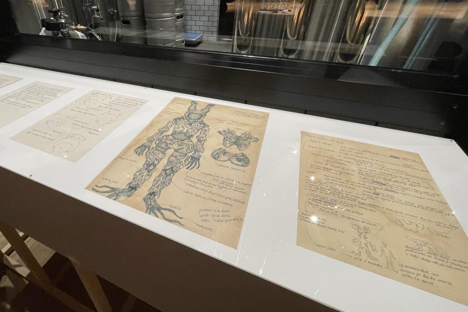 馬場家にある『KOBO Brew Pub』は、クラフトビールが飲めるお店。なんと、ここにも作品が展示されていました。未知の生物「リンジン」とそれを発掘・研究するN氏、という作品を貫く独特の世界観が建物の雰囲気にマッチしています。この会期中だけの世界観になっているので、ビールやドリンク片手にぜひお楽しみください。