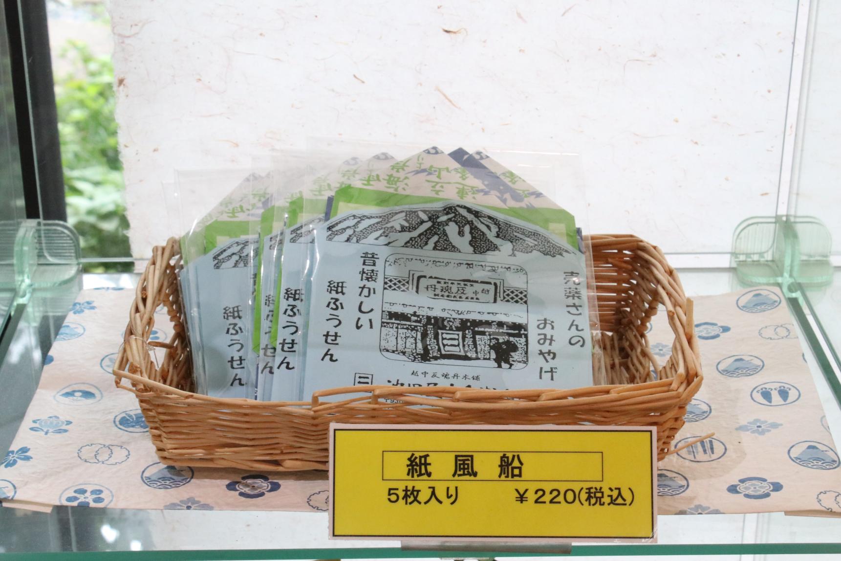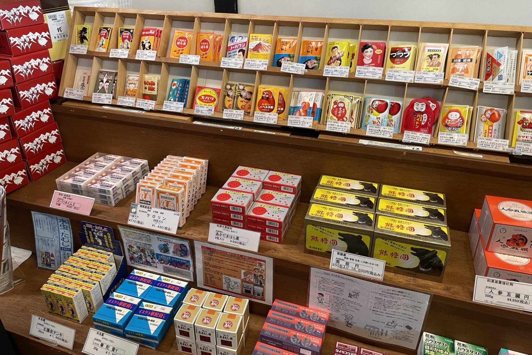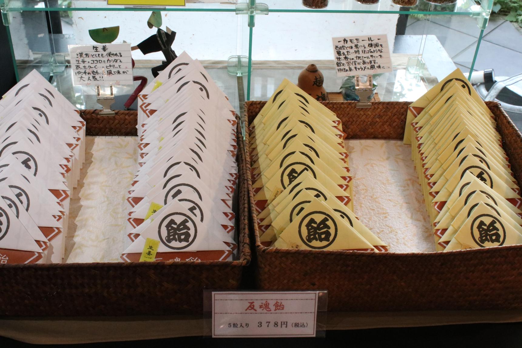 お土産には、薬はもちろんのこと「反魂飴」という昔ながらの飴もおすすめです。パッケージには、昔の薬の包み方が書かれています。富山の薬売りがおまけとして配っていたと言われている「紙風船」も人気、とのことです。