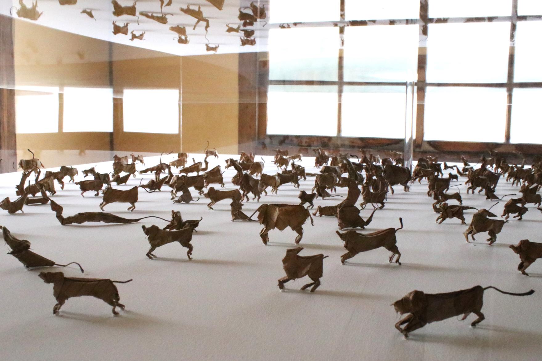 中島閘門操作室では、枯葉からできた生き物を展示した作品があり、その細かさと想像力の豊かさに心を奪われました。