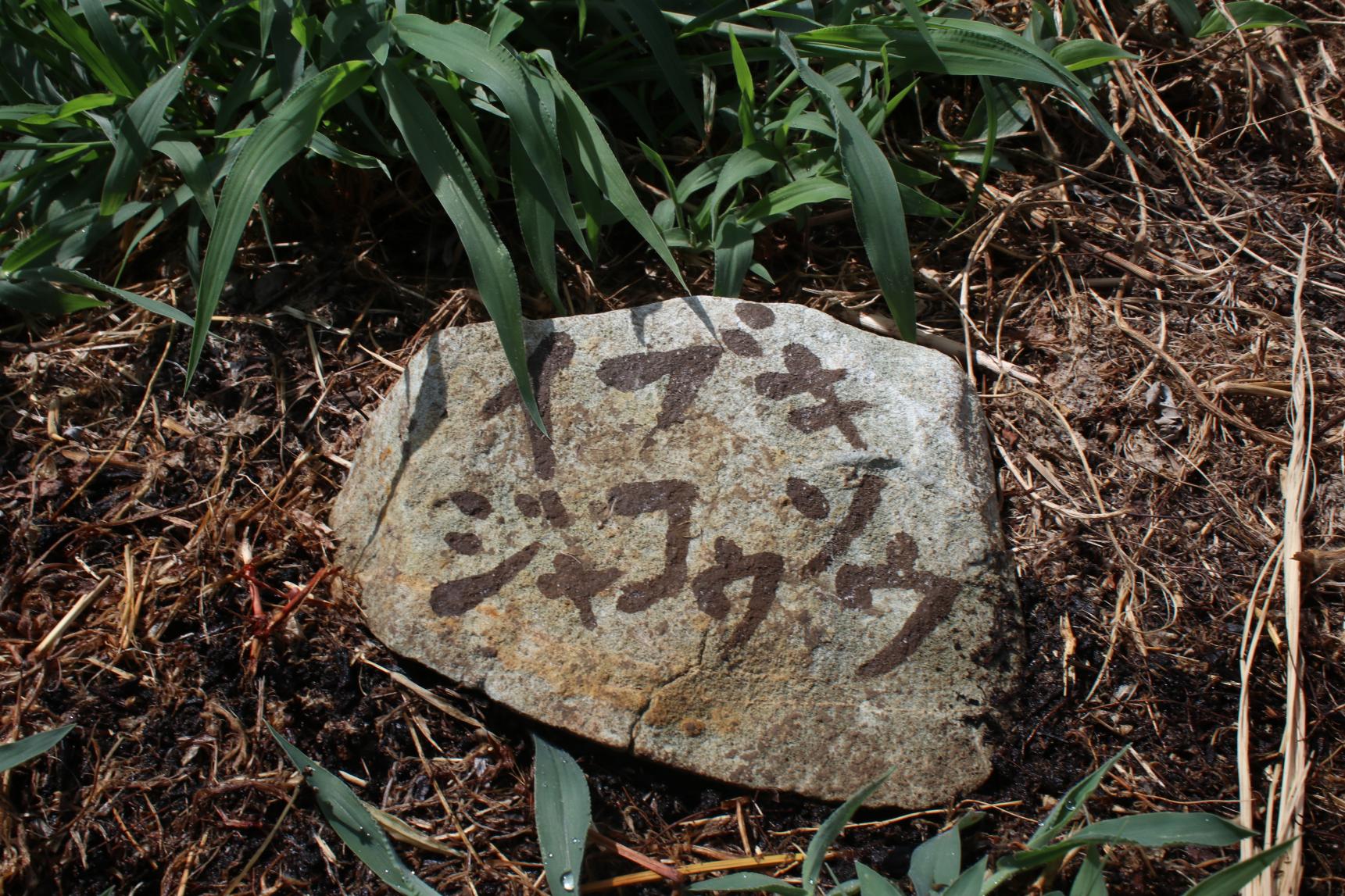 アロマ工房「The Workshop」の横の道には、さまざまなハーブが植えられています。石に名前が書いてあるハーブもあるので、それを見つけながら歩いてみてください。