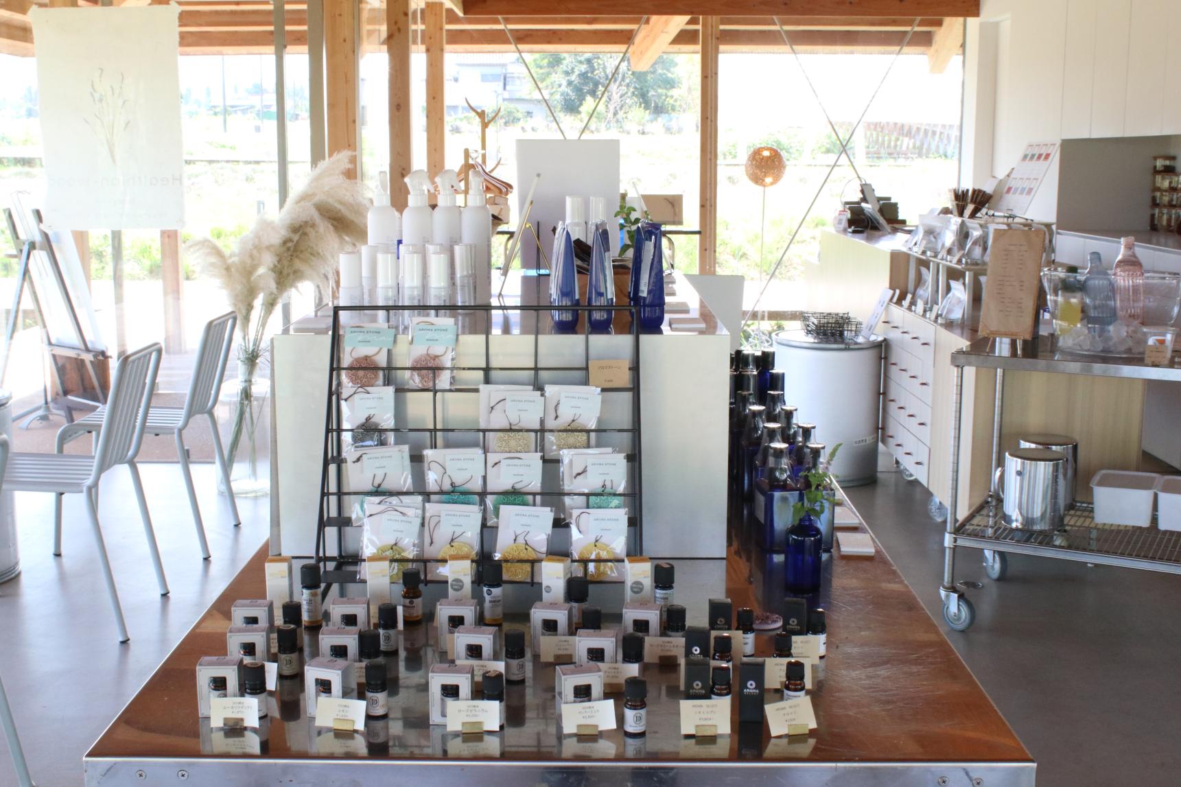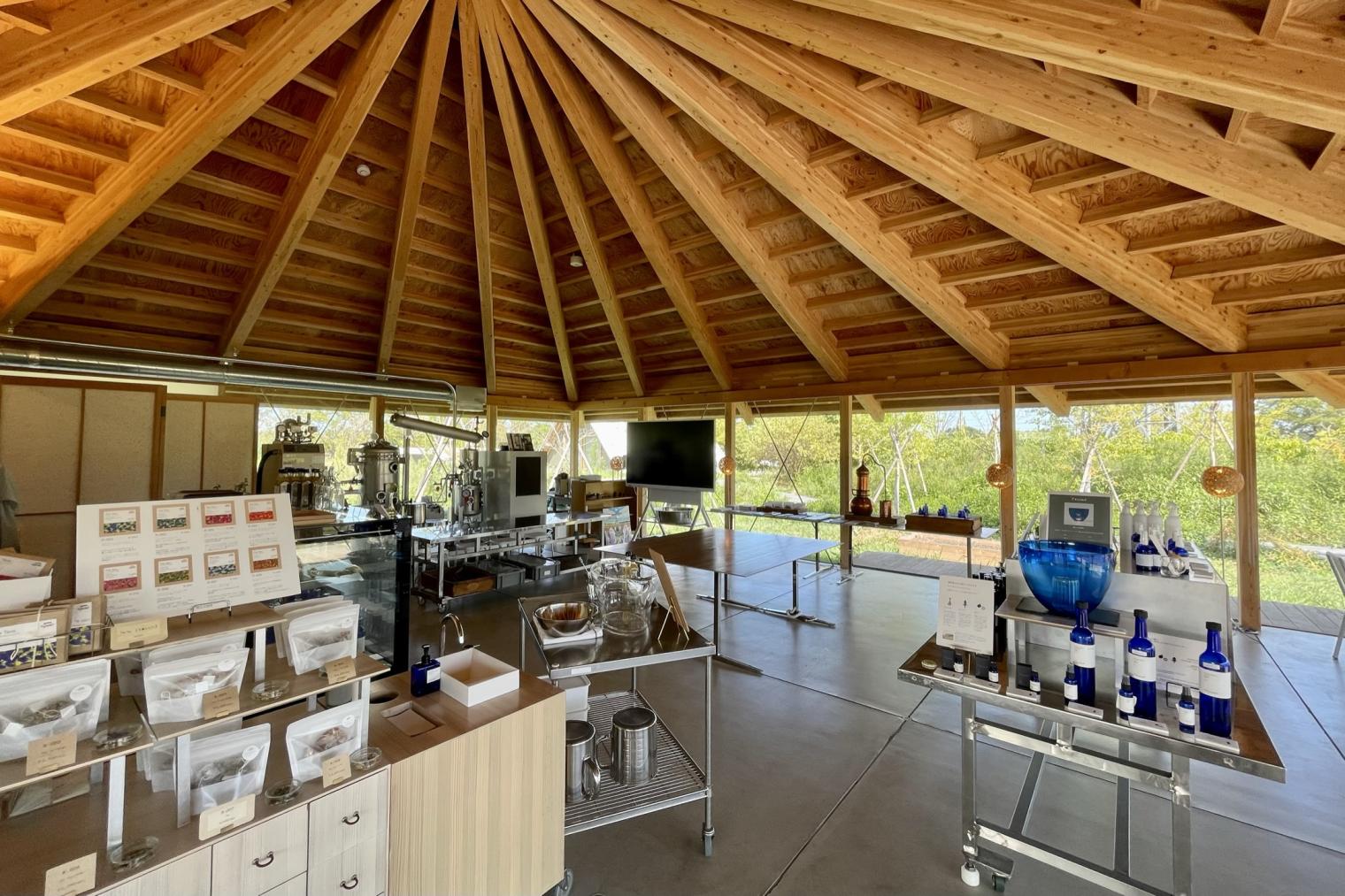 アロマ工房「The Workshop」には、「The Garden」で採れたハーブから精油を作るための蒸留器が置かれています。ハーブの関連グッズも販売されており、営業時間内は誰でも自由に入れます。