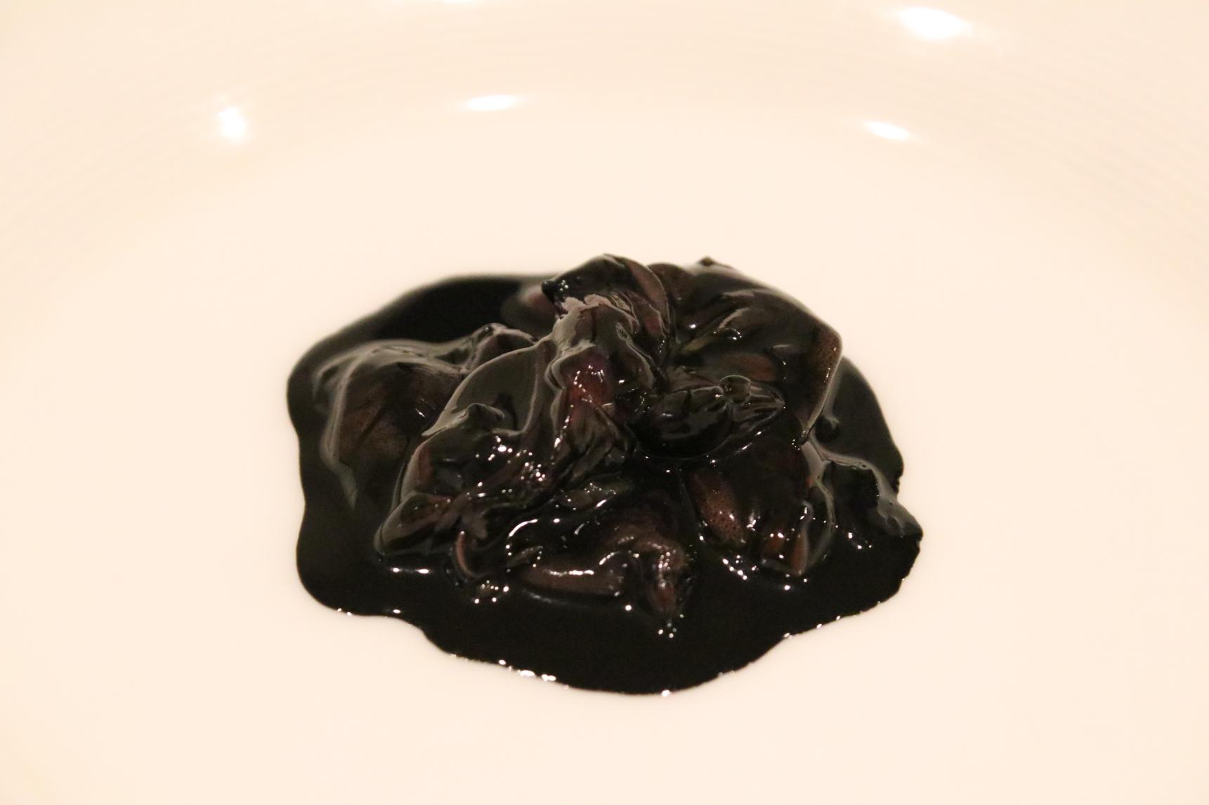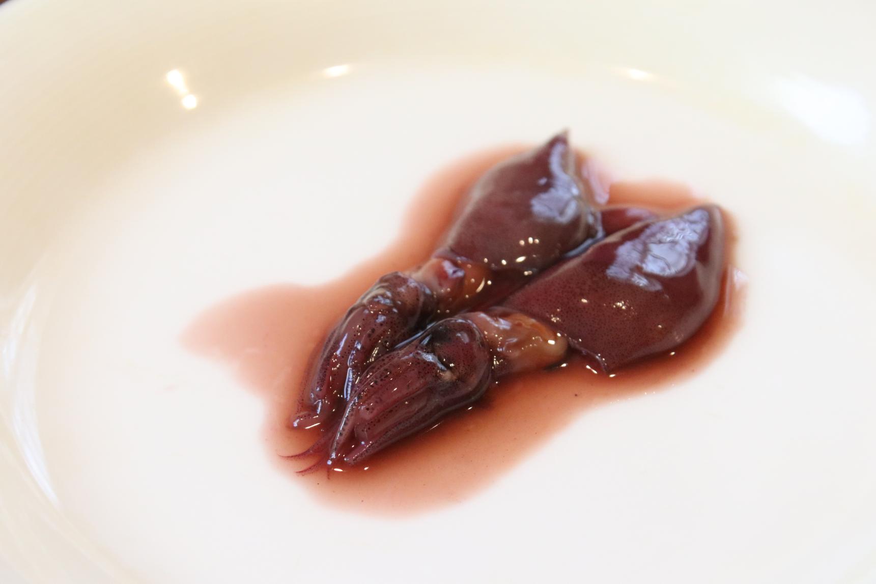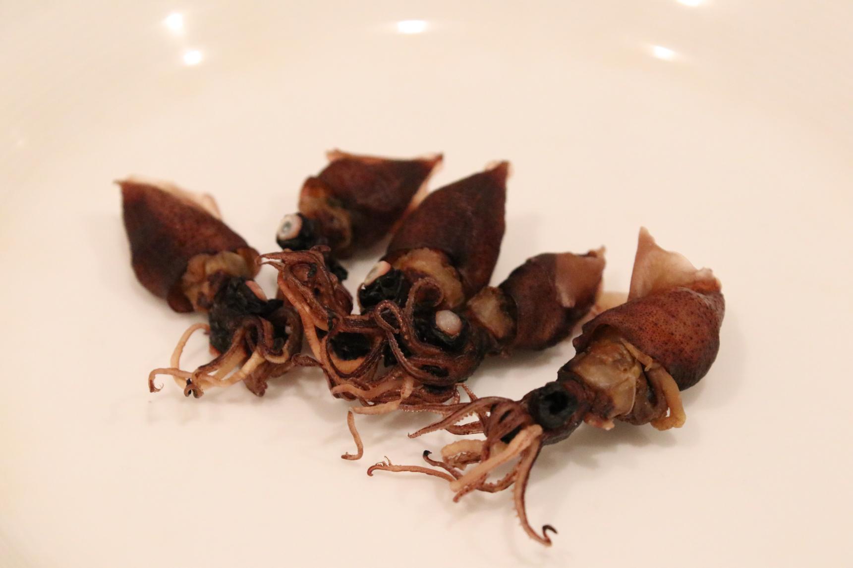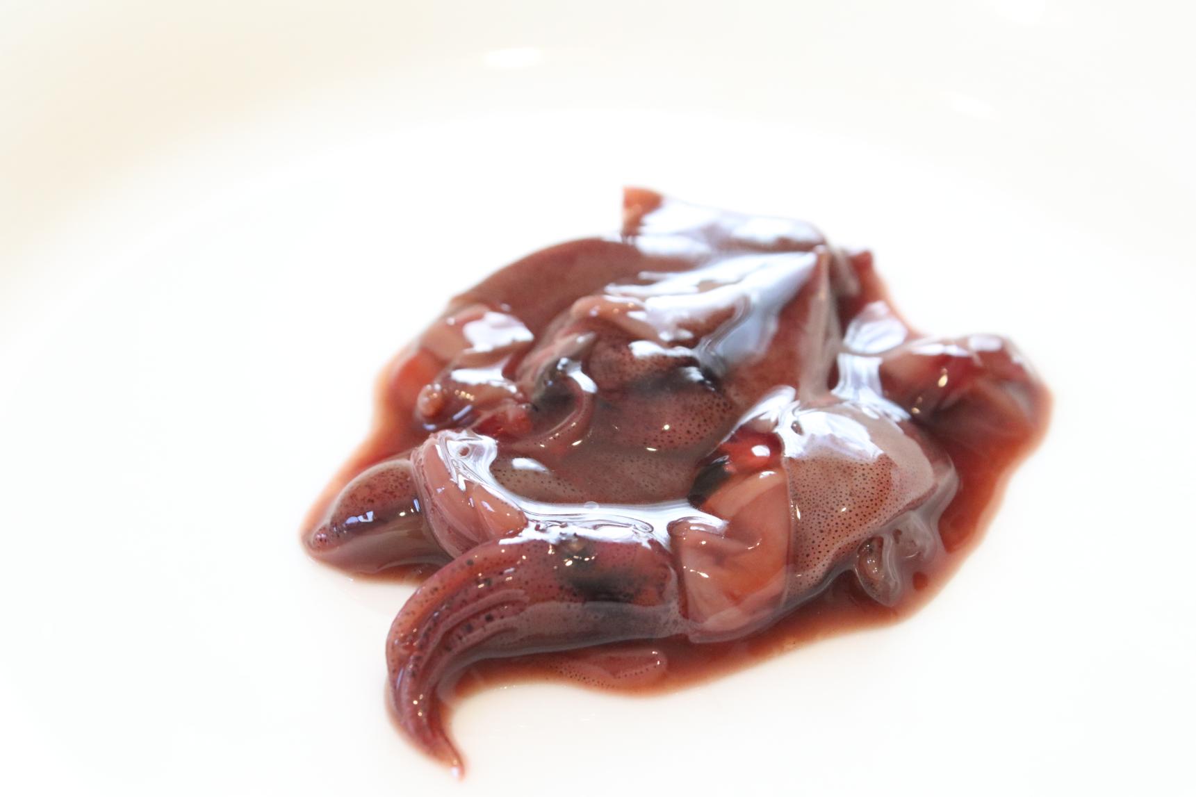 ホタルイカをイカ墨とともに熟成させたものです。富山ではイカをイカ墨につける「黒造り(くろづくり)」が人気なのですが、その手法を、ホタルイカに応用したものです。イカ墨の味が濃く、ごはんとよく合います。
