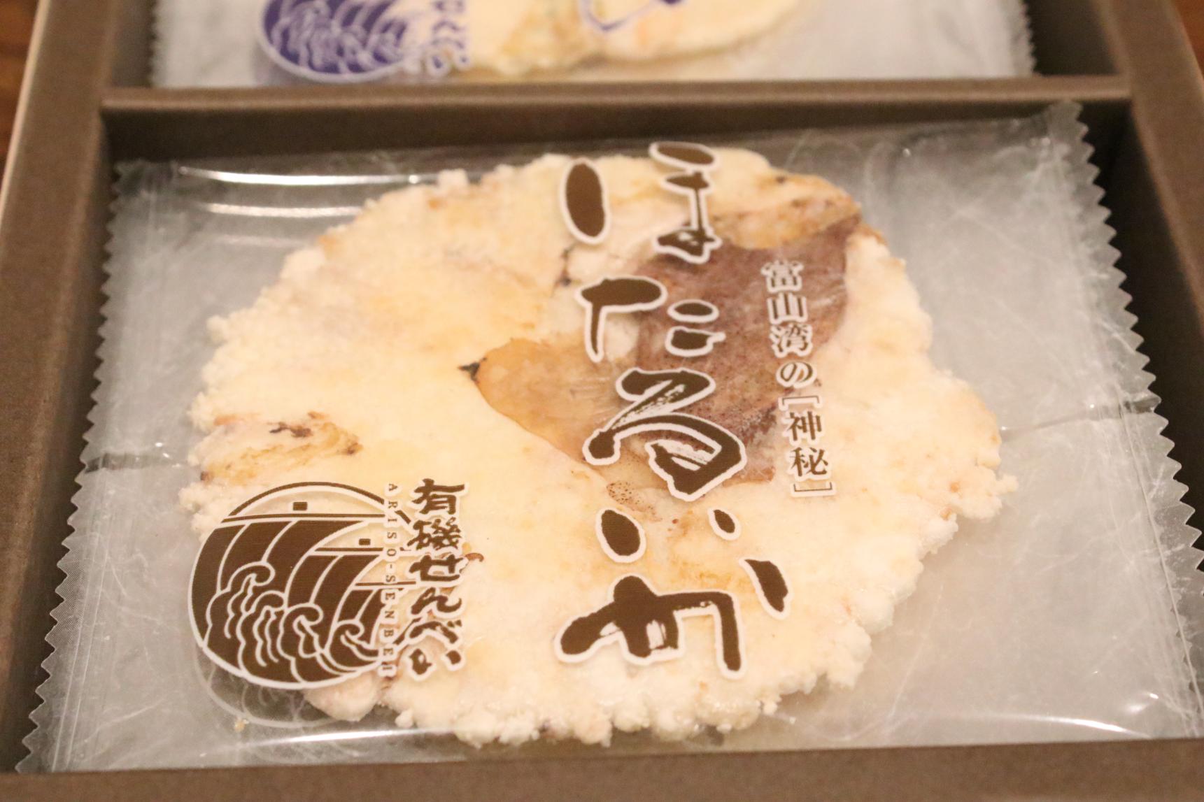 昭和3年創業のせんべい屋「田中屋」による、海産物を入れて焼き上げたせんべいです。様々な富山の海の幸が入ったせんべいがあるのですが、このセットは富山の代表的な海産物であるシロエビとホタルイカが入っています。ホタルイカのせんべいはサクサクの食感の中に、やさしくホタルイカの風味が感じられました。シロエビのせんべいは、青のりとシロエビの風味のバランスがとても良かったです。個包装なので、友人、知人や職場の同僚に配るのにもぴったりです。
