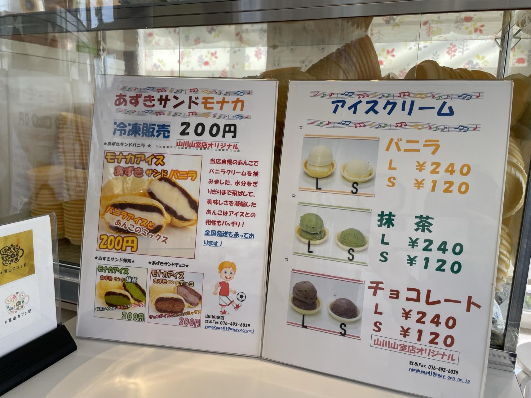 2022年に開店30年を迎えた「山川(やまかわ)山室(やまむろ)店」。1年を通して売られているモナカは、さっぱり味のアイスを、サクサクのモナカで挟んだ昔ながらのモナカです。山川は富山市内に数店舗あり、どの店舗にもモナカがあるので、富山市民にとっての定番アイスです。ぜひお試しください!