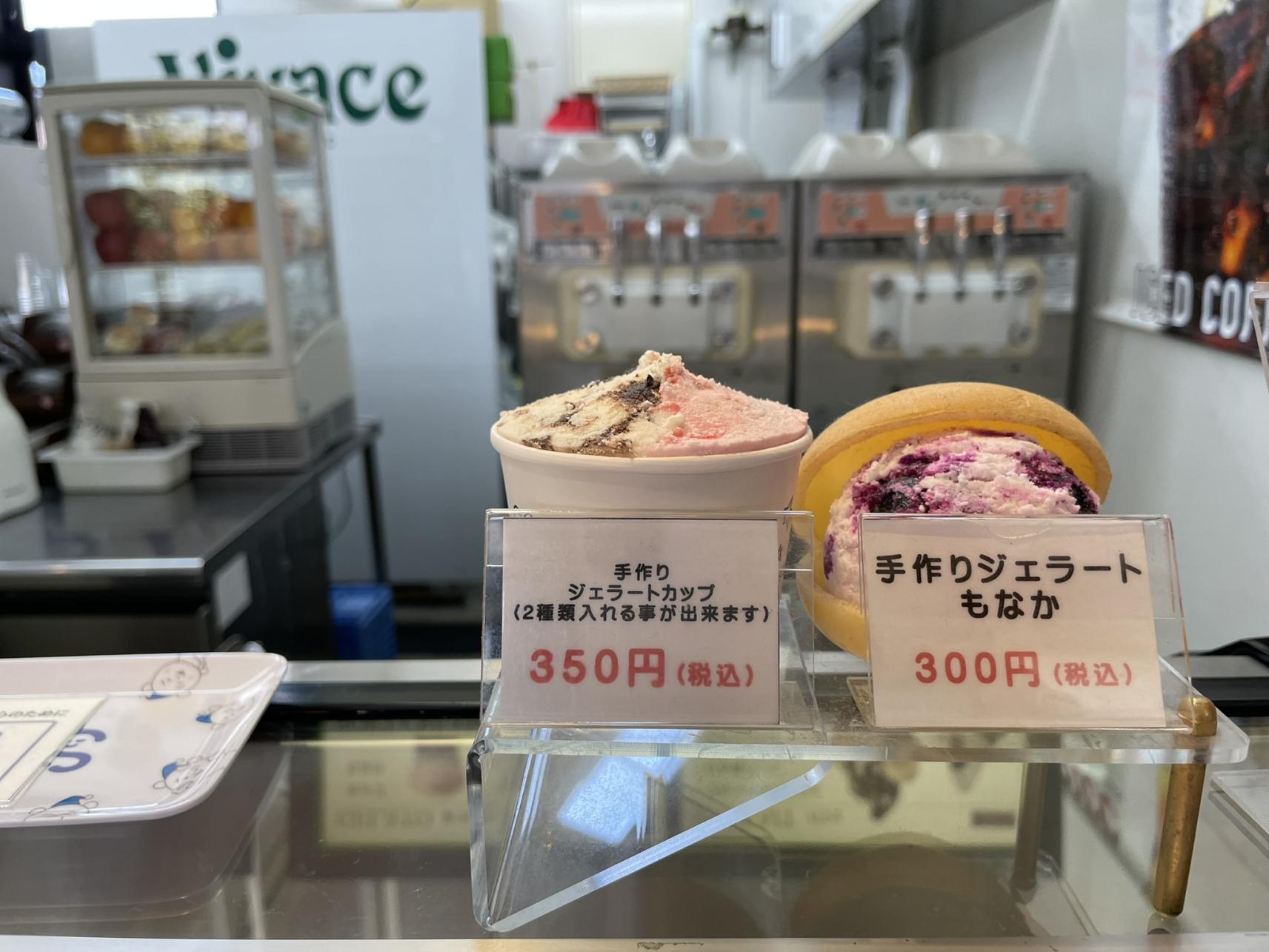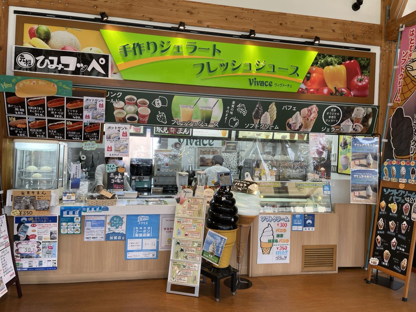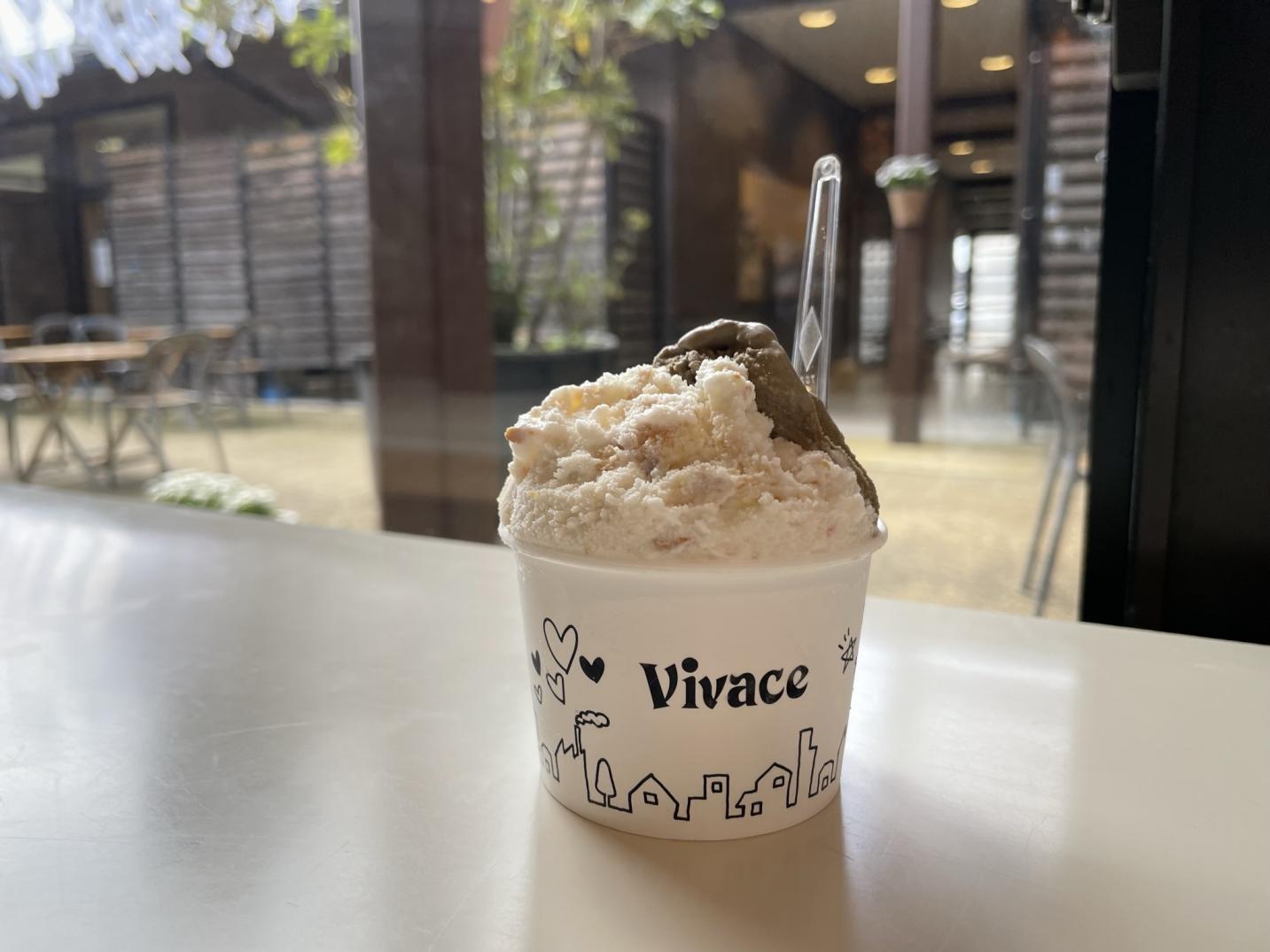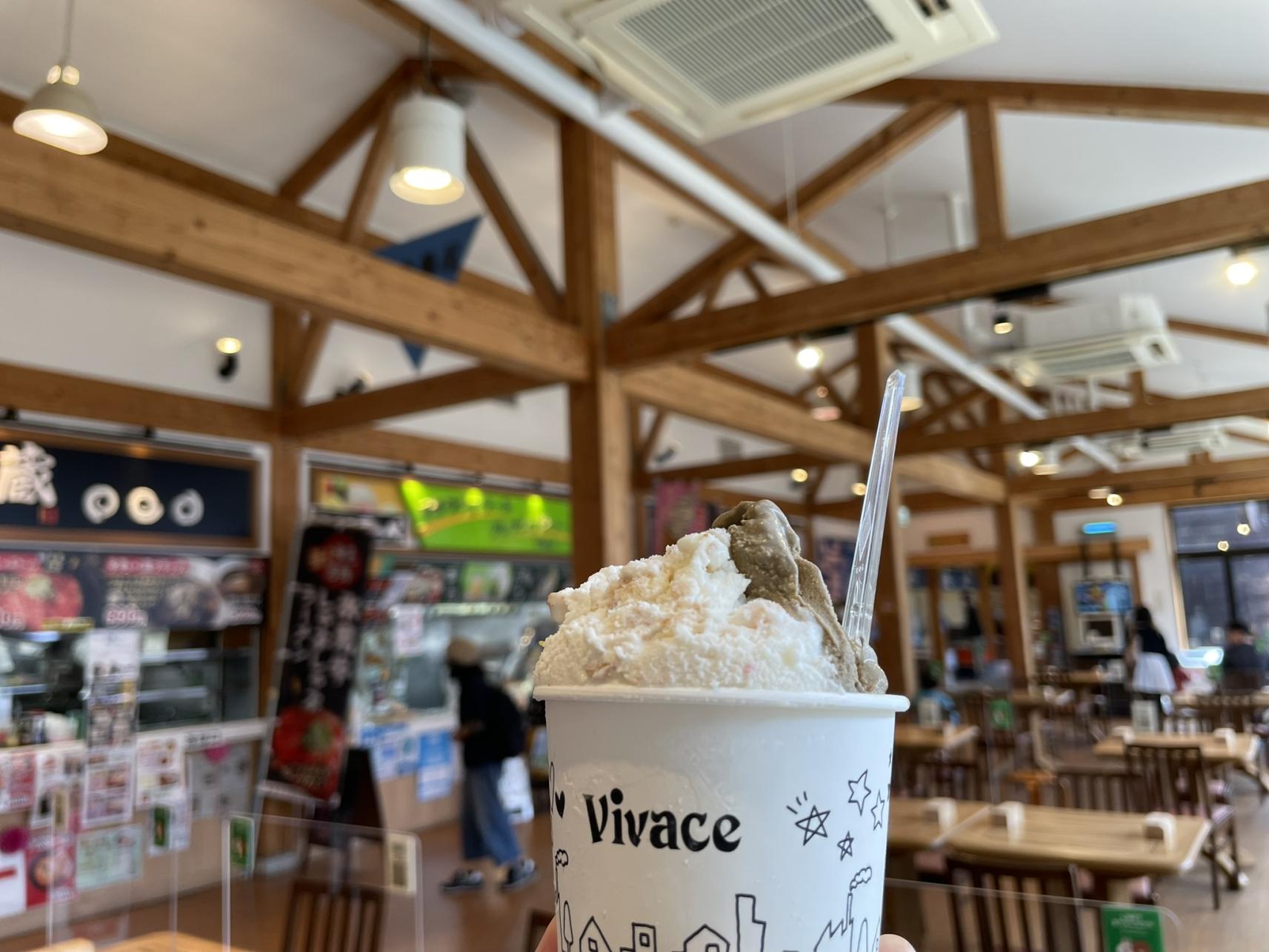 「vivace(ヴィヴァーチェ)」は「ひみ番屋街」のフードコートにあるアイス屋さんです。黒いソフトクリームはよく観光ガイドで紹介されていますが、個人的なおすすめは、富山県産の新鮮な牛乳を使った手作りジェラート!