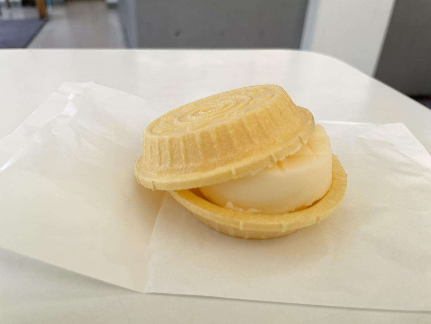 口に入れるとコーヒーの香りがふわっと漂い、上質なカフェラテを食べているような感覚になります。溶けることなく最後まで食べ進められるかたさなので、落ちついて味わうことができました。後味は、深煎りコーヒーを飲んだ時のような苦味と甘みで、食べた後まで幸せな気分が続きました。焙煎所のコーヒーの香りがおいしさを倍増させてくれるので、ぜひ店内で食べてみてください。