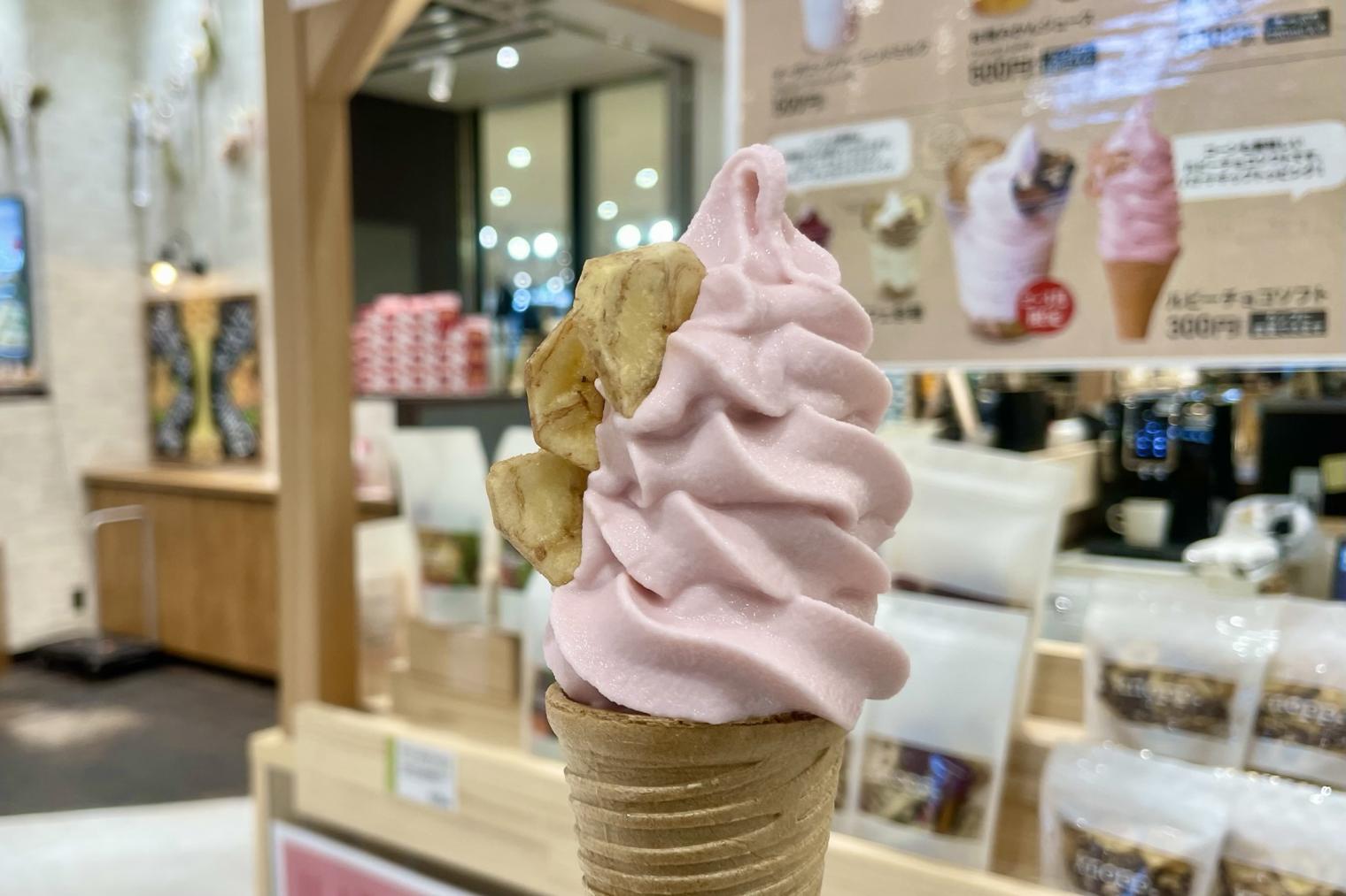 富山駅前にある「MAROOT(マルート)」の1階にあるナッツ&ドライフルーツ専門店「knopp.(クノップ)」では、ルビーチョコソフトクリームを販売しています。何といっても目を引くのは、ルビーチョコレートならではの薄いピンク色。食感はジェラートとソフトクリームの間くらいで、甘さ控えめのチョコレートの風味が味わい深く、おいしかったです。
