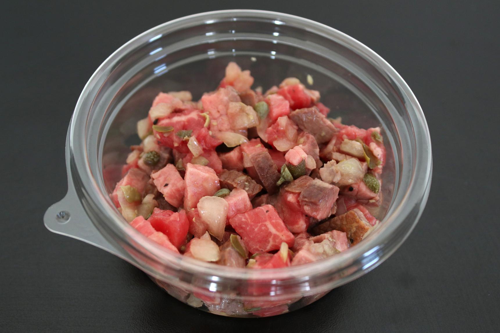 池多ファームの牛肉にハーブやたまねぎを加えた一品。「一度購入したお客さんは、また買いに来ることが多いです」という言葉とともにお店の方がおすすめしてくださいました。この満足感、おいしさ、価格ならリピート決定です!