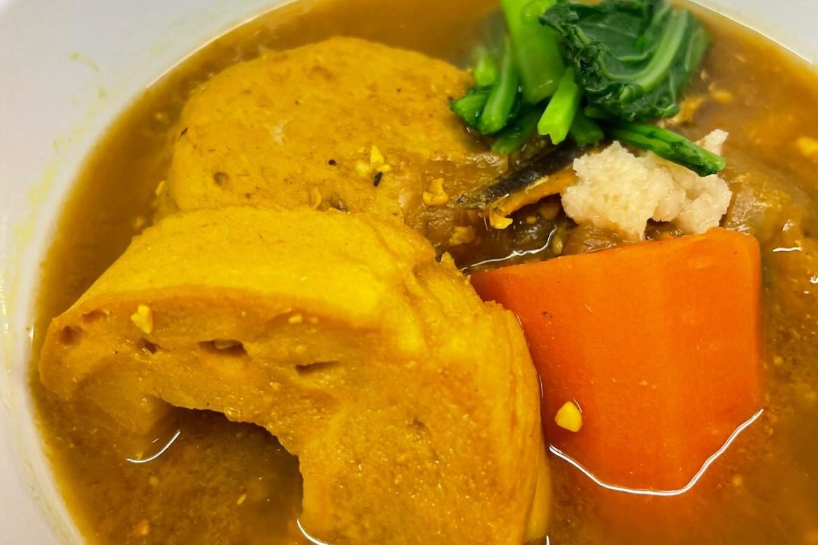 「メツゲライイケダ」の向かいにある「ひみつカレー古沢店」は、テイクアウトのカレー専門店。オリジナルレシピのカレー各種が食べられます。写真で紹介している「氷見かぶすスープカレー」(季節商品)は、氷見(ひみ)周辺でとれた野菜や魚のすりみでできた団子が入った、和風スープカレーです。スパイスと和風だしのバランスが絶妙な逸品でした!
