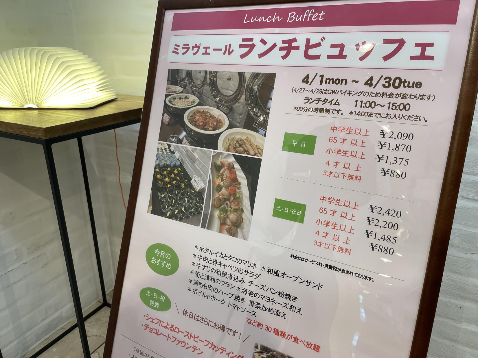 ビュッフェのメニューは月替わりです。今回ご紹介するのは2024年4月のメニュー。