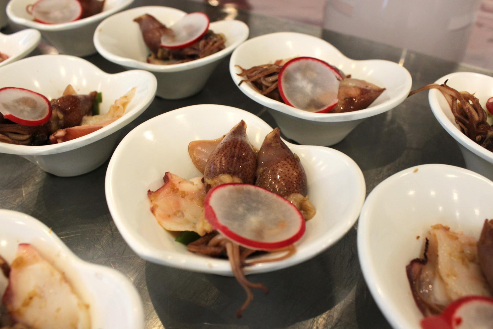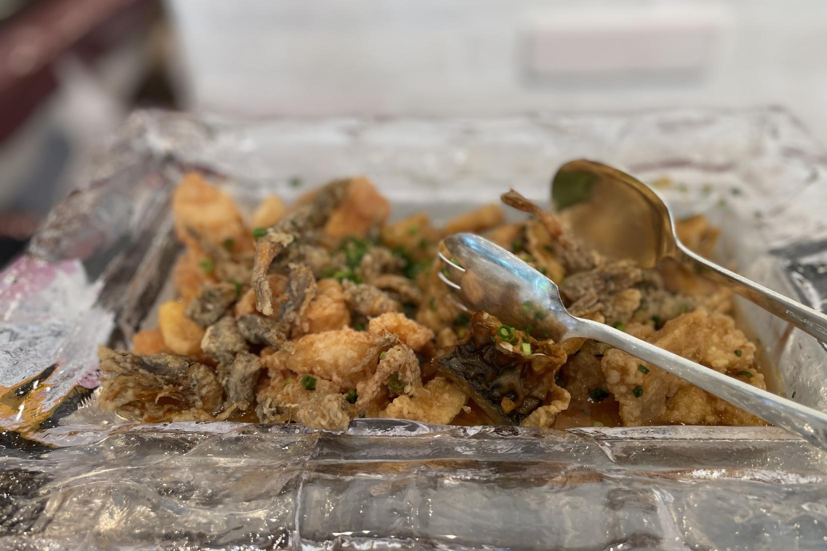 旬のホタルイカを使った「ホタルイカとタコのマリネ」は、和風の味付けでいくらでも食べられそうだと感じました。能登のガスエビは頭からまるごといただけるのですが、殻も含めてエビのうまみが感じられ、エビ好きには至福の一品でした。驚いたのは、「雪下人参のムース」。バターの風味、人参の甘味といくらの食感のハーモニーが素晴らしかったです。家では作れない味で、思わずおかわりしてしまいました。サラダの野菜が新鮮だったことにも感動。魚津産のカニがのった「ホテル自家製豆腐」も、素材のおいしさをしみじみと感じられ、おかわりしました。