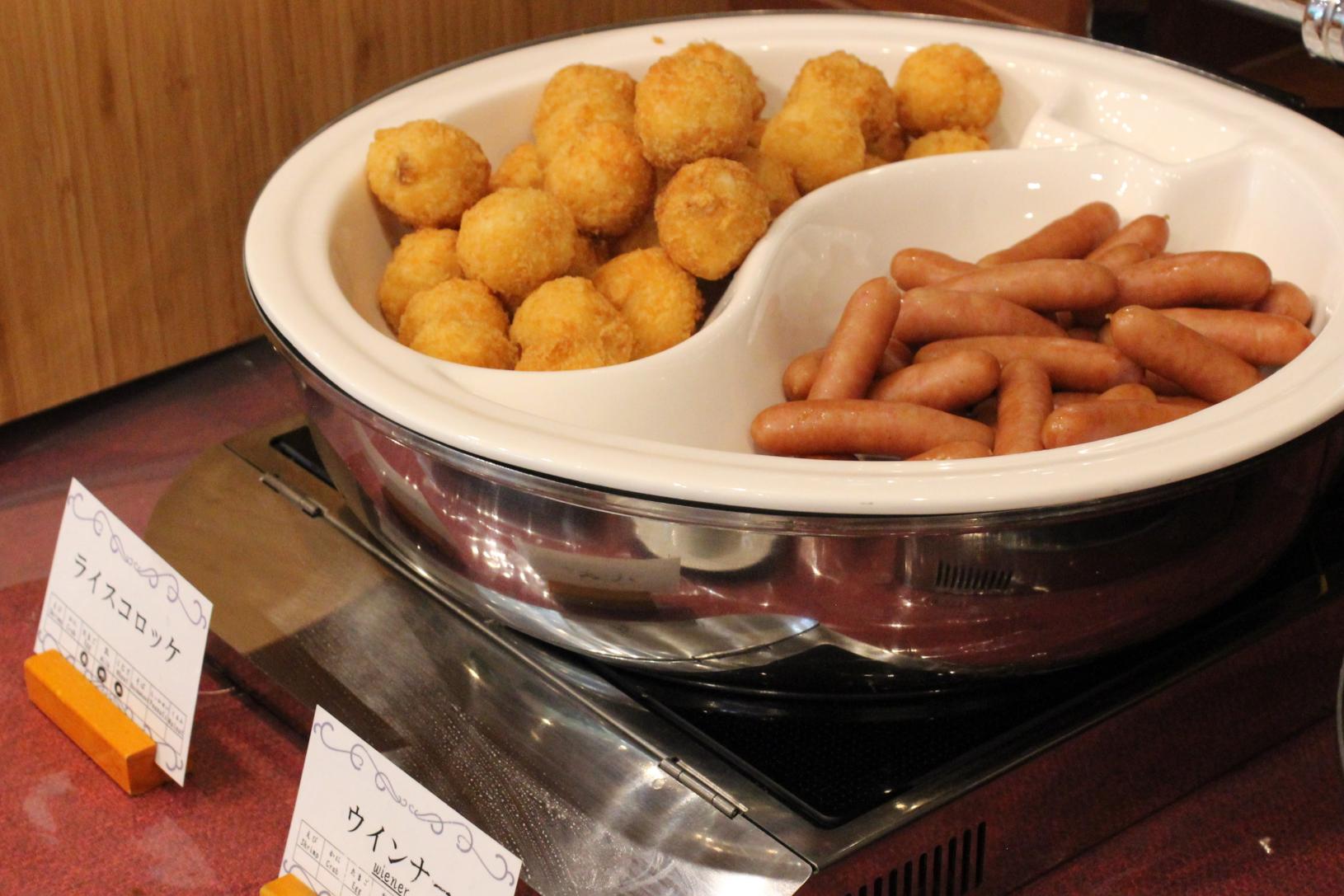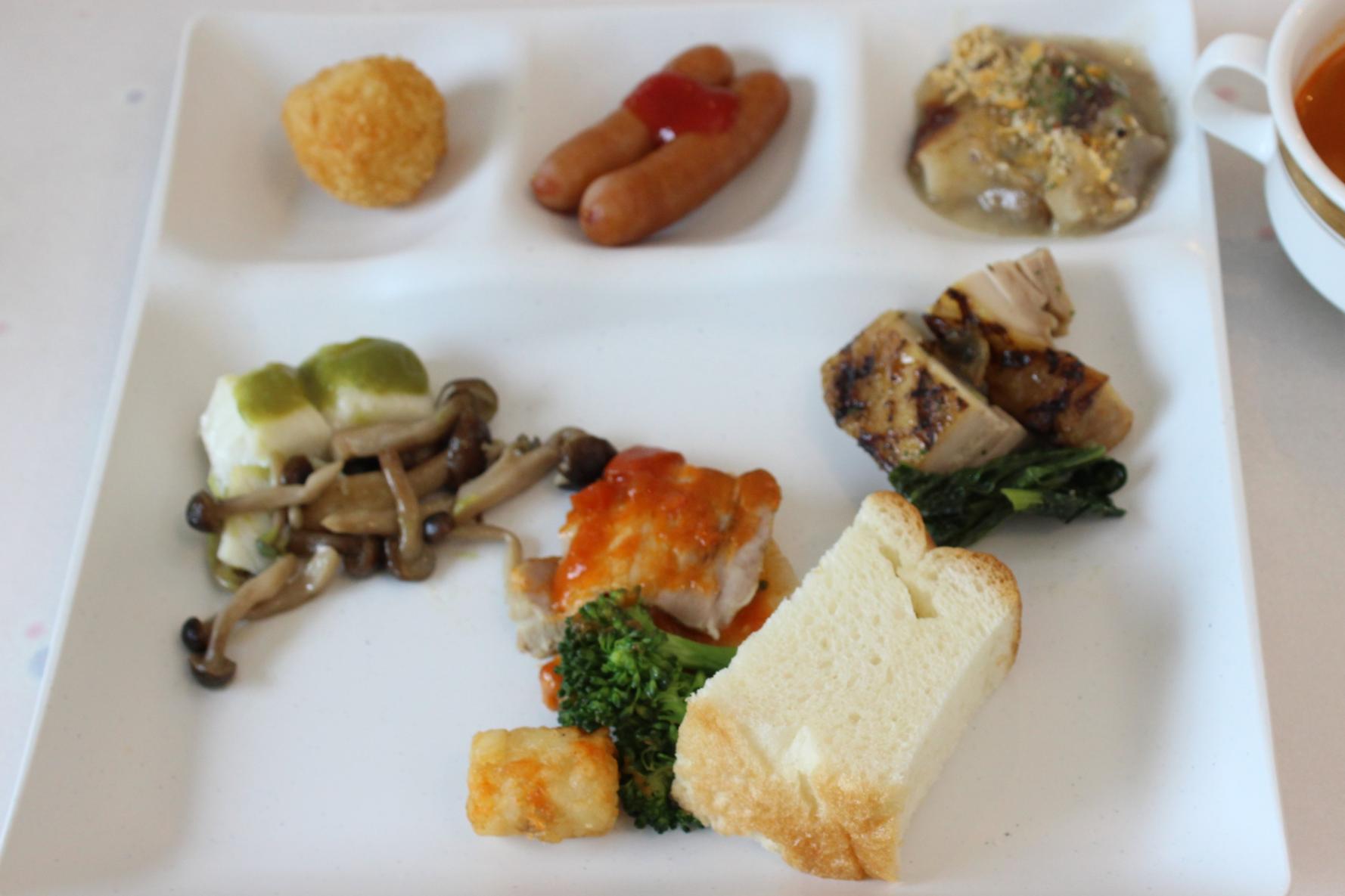 あたたかいメニューは、小さい子どもに人気の「ウインナー」や「ライスコロッケ」から、年配の方に特に喜ばれているという白身魚の「木の芽味噌焼き」まで多彩なラインナップで感動しました。「鶏もも肉のハーブ焼き」や「牛筋の和風煮込み」「豚肩ロースのトマトバターソース」といったお肉好きの方向けのメニューもありました。
