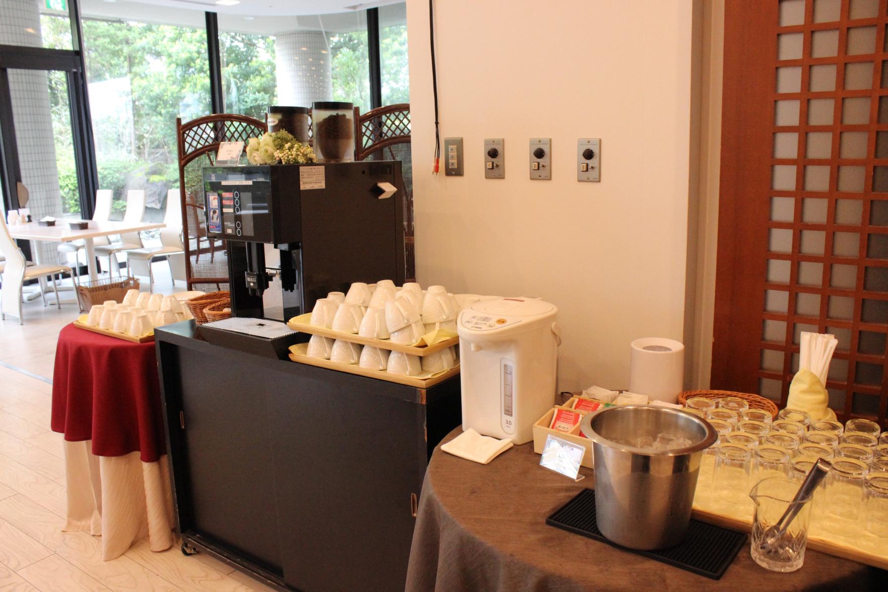 飲み物コーナーも充実しており、コーヒー、お茶、各種ソフトドリンクから好きなものを選ぶことができました。
