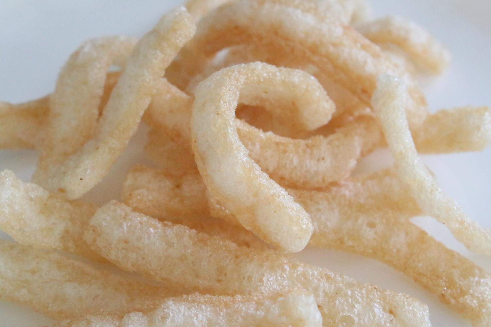 縦長の一口サイズの生地にたっぷり白えびが練りこんであるので、口に入れると風味が広がります。軽くてサクサクの食感で、袋を開けたら最後、手が止まりません!